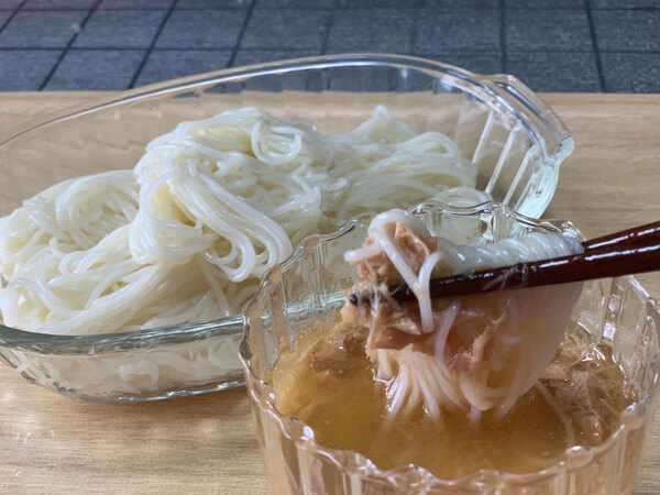 サイゾーウーマン暮らし食べ物『家事ヤロウ!!!』素麺レシピ、すごく塩辛い味 暮らし 【あのツイッターレシピ、やってみました】 『家事ヤロウ!!』レシピ【やみつき無限つけダレそうめん】作ったら、“ツナマヨ+ごま油+鶏ガラ”コンボに箸が震えた! 2020/08/19 18:00 アウちゃん(ライター) ツイッターレシピ、やってみました 油っこい! 味が濃すぎて辛いかも!? 何かの間違い? シーチキンや油が底のほうに沈むので、よ〜く混ぜてから食べてみる。 シーチキン、マヨ、ごま油、鶏ガラスープのコンボ(C)サイゾーウーマン 油っこい! 味が濃すぎて塩辛いかも!? 何かの間違い? 一目見て濃いと感じたが、食べてもやっぱり、ただただ味が濃かった。私が何かの量を間違えたのか? といろいろ思ったが、今まで食したことのないほどの、濃厚なそうめんに箸が震えて進まない。公式レシピには「レモン汁が油っこさを減らしさっぱりとさせてくれます」とあるが、レモンの働きを感じない。「すげぇ塩っ辛いや……なんでなん……」とブツブツ言いながら考えた。 シーチキンとごま油、さらにマヨネーズの組み合わせが、「つけダレ」にしては濃すぎるのでは? 思い切って、そうめんの入った皿に【やみつき無限つけダレ】をぶっかけてみた。食べてみると、塩気や油っこさがちょうど良くなって、さっきとは真逆に食べやすくおいしい。 なるほど、【やみつき無限つけダレ】はぶっかけそうめんにするのが良さそうだ。そして、シーチキンとごま油は作る際に好みの濃さに調節するのがポイントだと思う。濃いめでそうめんをガッツリ食べてみたい。そんな日に、パワーを与えてくれそうなレシピだった! 【総評】 もう一度作りたい度:★★★★★(今度は味を確認しながらつけダレで食べてみたい) ズボラ主婦でも再現可能度:★★★★★ 子どもウケまたは夫ウケ:★★☆☆☆(味の濃度で好みは分かれるかも!?) 前のページ123 アウちゃん(ライター) 現在4歳と1歳を育児中の家事&料理がまったくできない主婦。好きな食べ物は激辛料理。しかし料理は夫担当。関西出身、福岡在住のライターブロガー。家事に関しては【見なかった事にしよう】が合言葉。 最終更新:2020/08/19 18:00 楽天 安うま食材ダイエット!vol.4 ツナ缶で糖質オフ レシピ考えた人の食生活、塩分・脂質ヤバそう 関連記事 『家事ヤロウ!!!』の【罪深いチーズケーキ】作ってみたら、超濃厚でめっちゃおいしい! 味わい深すぎる罪の味!ネットで話題【ぺぺたま素麺】、激辛好きも要チェック! ニンニクと一味で食欲増進、完全にハマった!『家事ヤロウ!!!』で絶賛【ナッツめんつゆ】作ってみたら……超そうめん進む味やん! 香ばしいやん!つくりおき食堂【やみつき無限きゅうり】、予定の「倍量」作るべし! うますぎて一瞬で完食、きゅうり嫌いも「全然イケる」絶賛バズレシピ・リュウジ「半熟餅カルボナーラ」、料理ダメ主婦が作ったら……“絶品レンチン餅”に感動 次の記事 上半期に購入した「高額商品ベスト3」 >