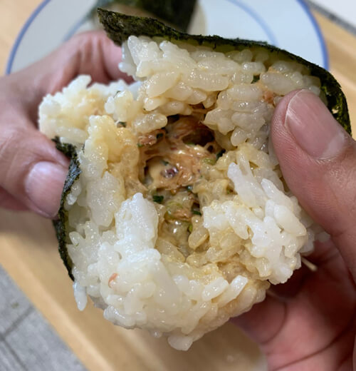 サイゾーウーマン暮らし食べ物『家事ヤロウ!!!』レシピ【クリームチーズおにぎり】 暮らし 【あのツイッターレシピ、やってみました】 『家事ヤロウ!!!』【クリームチーズおにぎり】名前で味を想像してはいけない!? 「ツナマヨ」好きがハマる、バカウマおにぎりだった! 2020/09/30 17:00 アウちゃん(ライター) ツイッターレシピ、やってみました 1口目から、なにこの感動! ジュワッと味が染み込んでそうな、オニギリを豪快に割るとこんな感じに。 味は!? 味はどうなの!? 食べてみました。 中身はこんな感じ(C)サイゾーウーマン 1口目から、なにこの感動。口当たりは完全なツナマヨだが、マヨネーズなど使っていない。クリームチーズ感というより、濃厚なマヨネーズ味のようだ。「海老マヨ」「ツナマヨ」が好きな人なら、好む味だと思う。 心配していた「クリームチーズにネギ・かつお節」の奇抜な組み合わせだが、これが不思議と合う。いや……完全に絶妙すぎるバランスでマッチしてしまってる。ジュワッとお米に染み込んだクリームチーズと醤油が、これまた震えるうまさだ。想像していた味とは全く別すぎて驚いた。 最初は味が不安だったため、小さめのおにぎり2個しか作らなかったが、全然食べれる! 足りないくらいで少し後悔しました。このおにぎりが食べたいがためにクリームチーズだけ買いにいってしまうかもしれない。 まさに「騙されたと思って食べてみよう」だ。期待を裏切るうまさで総評価は間違いなく満点です! 【総評】 もう一度作りたい度:★★★★★ ズボラ主婦でも再現可能度:★★★★★ 子どもウケまたは夫ウケ:★★★★★(夫も一瞬で食べてしまった) 前のページ123 アウちゃん(ライター) 現在4歳と1歳を育児中の家事&料理がまったくできない主婦。好きな食べ物は激辛料理。しかし料理は夫担当。関西出身、福岡在住のライターブロガー。家事に関しては【見なかった事にしよう】が合言葉。 最終更新:2020/09/30 17:00 Yahoo kiriクリームチーズアイス 2L クール [冷凍] 便にてお届け 【業務用食品館 冷凍】 もうこれで酒飲めるやつじゃん 関連記事 『家事ヤロウ!!!』【海苔とベーコンの炊き込みご飯】5歳の子どもが「おかわり」リクエスト! バターライス風のコクが大ウケ『家事ヤロウ!!!』レシピ【無限無限枝豆】、作ってみたら……ずっとしゃぶっていたい、吸っていたい。ヤバい料理だった『家事ヤロウ!!!』夜食レシピ9位の【餅ちくわ】、作ってみた! ポン酢+バターの味でシンプルに「うまっ」!『家事ヤロウ!!!』【絶品ナスユッケ】、焼き肉のタレを使った“絶品ダレ”が簡単うますぎる!! 白米にかけると濃厚「ユッケ卵かけご飯」に変身『家事ヤロウ!!!』話題の「バスクチーズケーキトースト」、もはやパンを超えた“絶品スイーツ”だった! 冷やして固めてもうまい! 次の記事 瀬戸大也、モラハラ疑惑で批判の嵐 >