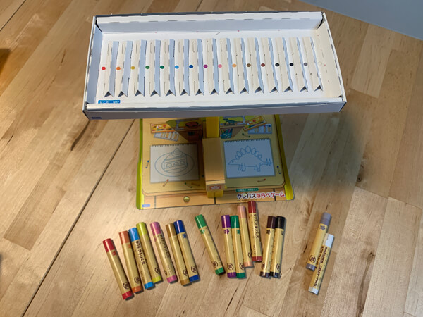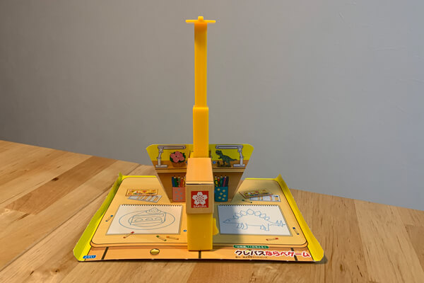 サイゾーウーマン暮らし100均・雑貨「幼稚園」11月号付録レビュー 暮らし 【雑誌付録レビュー】 【付録レビュー】「幼稚園」11月号、「サクラクレパス」の再現度高すぎ! 子ども大喜びの“仕掛け”とは?【児童向け総合雑誌】 2020/10/05 15:19 amimeko(ライター) 雑誌付録(ふろく)レビュー ゲームに失敗しても楽しい♪ 本物そっくりのパッケージ! (C)サイゾーウーマン 組み立ての際に必要なものは、セロハンテープのみ。複雑な工程が多い企業コラボ付録ですが、制作にかかった時間は、いつもよりも短めの30分くらい。4〜6歳の子どもでも、お手伝いできるレベルの難易度でした。 仕上がりはこんな感じです。 1本1本もリアル! (C)サイゾーウーマン クレパスは、予備の2本を含めた全18本入り。1本1本のデザインはもちろん、箱の蓋の内側や裏面まで、細部にわたって再現されていて、ぱっと見、本物と見間違えてしまうレベルです。 本物同様、蓋の裏側には色の名前が順番で書かれています (C)サイゾーウーマン 箱の裏面はこんな感じ (C)サイゾーウーマン こちらはゲームで使う装置です。 ゲーム用の装置 (C)サイゾーウーマン クレパスを支える柱はプラスチック製で、完成した状態で封入されているので組み立てる必要はなく、電池も不要。ボール紙でできた台紙と組み合わせ、装置を完成させれば、ゲームの準備は完了です! 先ほど作ったクレパスとこの装置を使って、早速遊んでみましょう♪ 「クレパスならべゲーム」 (C)サイゾーウーマン 遊ぶ前に、中身のクレパスは下に出しておきます。 クレパスの箱をセットして準備完了! (C)サイゾーウーマン 柱の下のほうにあるスイッチを「○」にして、クレパスの箱を柱に押し込んでゲームスタート! スイッチのオン・オフをお忘れなく (C)サイゾーウーマン 柱が上がりきる約30秒の間に、蓋のクレパスと同じ色の順番になるように、正しくクレパス並べ、スイッチを止めることができれば成功です! クレパスがふっ飛ぶ前に、見本通りに並べきれ! (C)サイゾーウーマン 柱が上がりきると時間切れ。その衝撃で箱の中のクレパスがドカーンとふっ飛んでしまいます。思いのほかすごい勢いでクレパスが飛び出すため、子どもは大喜び間違いなし! 「ジジジ……」という音とともに、柱がどんどんせり上がってくるので、思わずドキドキハラハラ。子どもと一緒に大人も楽しめそうですよ~♪ ぺぱぷんたす「おえかきパズル&ぺぱぷんたすパズル」 (C)サイゾーウーマン 続いて紹介するのは、ぺぱぷんたすの「おえかきパズル&ぺぱぷんたすパズル」。片面には、とってもカラフルなぺぱぷんたすのキャラクターたちがいっぱい! もう片面は、真っ白な台紙となっているので、自由に好きなイラストを描いて、自分だけのオリジナルパズルを作ることができます。 お絵かきに、パズルに、1つで2度楽しめる! (C)サイゾーウーマン 「幼稚園」11月号の付録は、特にクレパスの再現度の高さに驚きでした。いつもの企業コラボ付録よりは、ややインパクトに欠けるものの、子どもはかなり楽しく遊べるのでおすすめです。気になる方は、お早めに! 前のページ12 amimeko(ライター) 音楽が好きで、休日はライブやフェスに出かけることが多いです。多趣味なので時間が足りないことが最近の悩み。最近の雑誌の付録は侮れないですね! 最終更新:2020/10/05 15:19 楽天 幼稚園 2020年 11月号 [雑誌] 子どもと楽しく遊べること間違いなし! 関連記事 【付録レビュー】「&Rosy」11月号、ETVOS人気NO.1のアイテムをお試し! シックな上質ポーチ付きで超お得♪【女性誌】【付録レビュー】「リンネル」11月号、marble SUD整理収納セットがキュートで使い勝手◎! テレワークの強い味方に!【女性誌】【付録レビュー】「Gina」2020 Fall、Ray BEAMSの豪華コスメセットが超使える! 秋カラー12色で今すぐ旬顔に♪【女性誌】【付録レビュー】「InRed」10月号、可愛いだけじゃない! リラックマ箱ティッシュケースが全サイズ対応で小物入れにも【女性誌】【付録レビュー】「セブン銀行ATM」お札の出し入れ、スマホチャージもできる! 「幼稚園」10月号の企業コラボが進化【児童向け総合雑誌】 次の記事 スト・京本、「今ごろ世界出てた」豪語のワケ >