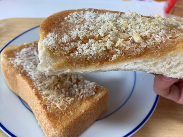 サイゾーウーマン暮らし食べ物『家事ヤロウ!!!』【揚げパン風トースト】 暮らし 【あのツイッターレシピ、やってみました】 『家事ヤロウ!!!』秋のパン祭りレシピ【揚げパン風トースト】、しっとり濃厚きな粉味は「完全におやつ」だった! 2020/11/25 19:00 アウちゃん(ライター) ツイッターレシピ、やってみました 完成! 給食の揚げパンより「大人味」!? 1分間焼いてみたが、上のほうのパン粉がまだこんがりしてないような……なんか白い。下のほうはパン粉がこんがりと色づいて、シャリシャリしてそうな出来栄えだ。 これ以上焼くと焦げそうなので食べてみることにしました! 上方はパン粉が白いまま(C)サイゾーウーマン 上のほうの白いパン粉部分から食べてみたが、まったく問題ない! サクサクのパン粉と砂糖が混じって「シャリシャリ」っとする歯ざわり。結構おいしいじゃないの。 パン粉と砂糖がシャリシャリな感じに!(C)サイゾーウーマン これはまさに、『家事ヤロウ!!』でも言っていた通り、給食で食べた『揚げパン』のきな粉をさらに濃厚にした味だ。表面はサクッとしているのに、バターときな粉がしっとり濃いめ。給食で食べた揚げパンより「大人味」に仕上がっている。 先ほど、指についたきな粉バターの甘さに悶絶してしまったが、焼いてみるとそこまで「激甘」な感じはしなかった。でも、バターが3個も入ってる……と思うと、カロリーが気になって仕方ない。そう思いつつも、一瞬で完食してしまった。もうこれは、完全なおやつだ。 表面のパン粉部分は甘く香ばしい癖になるサクサク食感、中のきな粉バター部分はしっとり濃厚。これは、小学生から大人まで楽しめる「濃厚揚げパン」だ。ほとんど自宅にあるもので簡単手軽にできるのも、いいのかもしれない! 【総評】 もう一度作りたい度:★★★★★ ズボラ主婦でも再現可能度:★★★★★ 子どもウケまたは夫ウケ:★★★★☆(我が家の5歳と2歳には少し早すぎるかな? 濃厚すぎて) 前のページ123 アウちゃん(ライター) 現在4歳と1歳を育児中の家事&料理がまったくできない主婦。好きな食べ物は激辛料理。しかし料理は夫担当。関西出身、福岡在住のライターブロガー。家事に関しては【見なかった事にしよう】が合言葉。 最終更新:2020/11/25 19:00 楽天 【バーゲン本】きなこが決め手の絶品レシピ コレと緑茶でこたつでぬくぬくしたい…… 関連記事 『ソレダメ!』レシピ【きのこの炊き込みご飯】作ったら、染み込む旨味に「うわぁ……ウマ……」とつぶやいた!バズレシピ・リュウジさん【至高の豚汁】普通の豚汁と思って作ったら絶句した! 夫も優しく微笑んだ!『ヒルナンデス!』『めざましテレビ』で話題「てぬキッチン」さんレシピやってみた! めちゃラク【スイートポテト】に子ども歓喜!コウケンテツさん【レタスのうまみ蒸し】、「旨味がすごい」と夫が絶賛! 料理できない主婦がほくそ笑むレシピだった!『ヒルナンデス!』登場レシピ【餃子の皮でとろ~りアップルパイ】作ってみたら……「うんま~~~いっ」! おいしすぎて簡単スイーツレシピ最高作にランクイン! 次の記事 NiziU、デビュー曲MVの演出に賛否 >