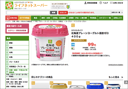 ■北海道プレーンヨーグルト脂肪ゼロ(400g、税抜99円)