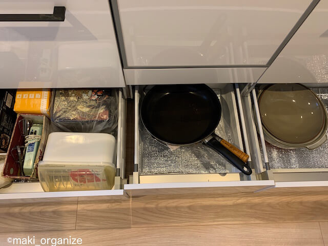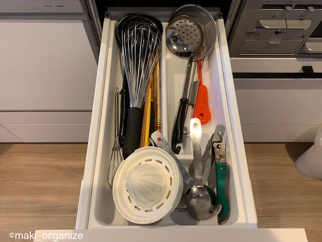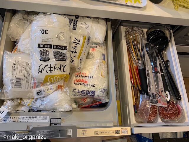 サイゾーウーマン暮らし住まいキッチン収納ビフォーアフター怒涛の12連発 暮らし 伊藤まきの「お片付けSOS」相談! キッチン収納、劇的ビフォーアフター12連発! 整理収納のプロが「100均グッズ」だけで手直し&解説 2021/03/08 19:30 伊藤まき(収納ライター) 「汚部屋」ビフォーアフター「お片付け・お掃除SOS」伊藤まき [3:Before]コンロに近い一番下段の引き出し [叶井家の収納]引っ越しで気づいた、ゴミ袋の量!(C)maki_organize 日用品をWEBで買う家ほど、まとめ買いをしがちなので、その物量に悩まされます。ゴミ袋は、ゴミ箱付近が鉄則なので移動しました。 [3:After]引き出し収納は、よく使うモノが優先! [プロの直し]フライパンは3個ありました(C)maki_organize コンロ上に置きっぱなしだった、調理道具の住所を決めました。ストック品より、よく使う道具を優先にするように。 [4:Before]グリル横の引き出し [叶井家の収納]せっかくの食洗機がストック品置き場になっています(C)maki_organize 狭い空間に、調理用ツールぜんぶを入れようとしないこと。滅多に使わない道具が、出し入れの邪魔になりストレスに感じます。 [4:After]調理ツールの収納は、一箇所にまとめなくてもOK! [プロの直し]7割収納で、見える化できる量へ。(C)maki_organize 調理ツールの使用頻度に分けて置き場所を変えます。写真上の引き出しには、2軍(週に数回使うモノ)が◎。たくさんあった調理箸は、2本残してほかは予備(3軍)へ。1年に数回しか使わないツールも3軍(別の引き出しにまとめる)です。 [4:ポイント]1軍の調理ツールは、コンロ脇がおすすめ! [プロの直し]油汚れが付きやすいため、3本ぐらいが◎(C)maki_organize 毎日使うツールのみ、コンロ脇に設置。写真上のように、マグネットフックへ。利き手側のツールスタンドに立てる収納もおすすめです。 [4:ポイント]水切りネット収納に、100均ポーチが優秀 [プロの直し]吊戸棚がある家には、扉の裏側へ用意します(C)maki_organize 食洗機に詰め込んであった「水切りネット」を、ダイソー「L型ビニールケース」へ詰めました。箱よりコンパクトにまとまるし、在庫量も見えるのでおすすめです。 次のページ [5:Before]コンロ下の引き出し 前のページ123456次のページ Yahoo Panavage ファイルボックス A4 紙 収納ボックス 小物入れ ファイルスタンド 書類ケース 机上収納ボックス ファイルボックス 文具収納 事務 関連記事 劇的ビフォー・アフターで解説! 狭くなったキッチンを「100円収納で快適化」するポイント集48時間で汚部屋スッキリ! 劇的ビフォーアフターで解説、「片付く家になる10ポイント」汚部屋ビフォー・アフター、衝撃5連発! 収納のプロが教える「片付く家になる10ポイント」狭くてイラッ、不快な「洗面室」をプロがスッキリ片付け! 6つの劇的ビフォー・アフター例「トイレ」の3大お悩み、収納ナシ・狭い・臭いをプロが解決! 実例3パターンでスッキリ片付く