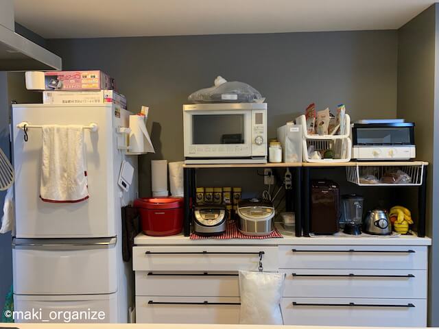サイゾーウーマン暮らし住まいキッチンカウンター、収納スッキリ実例集 暮らし 伊藤まきの「お片付けSOS」相談! キッチンカウンター収納、解決ビフォーアフター実例集! プロが“100均で簡単”機能的にスッキリ手直し 2021/03/15 19:30 伊藤まき(収納ライター) 「汚部屋」ビフォーアフター「お片付け・お掃除SOS」伊藤まき [整理テクニック]結束バンドで「小道具」を引掛け収納 [プロの直し]小さな道具は、吊るすが一番!(C)maki_organize 毎日使っている、鍋つかみと測りの小道具。こちらも、置く場所を決めるだけで作業効率が上がります。小さな引掛け穴に、結束バンドを通して冷蔵庫脇のワグネットフックに引っ掛けました。 [整理テクニック]結束バンドで「小道具」を引掛け収納 [プロの直し]レジ袋も引っ掛けが楽ちん(C)maki_organize レジ袋が廃止され、業務用レジ袋を用意する過程が増えました。100均のレジ袋は、穴が付いていないためステンレス製のS字フックに通して引っ掛けます。袋から取り出すより、簡単です。 カウンター上のゴチャゴチャを片付けて、機能的なキッチンへと仕組みを整えました。最後に、全体像の[After]でご覧ください。 [After:全景]100均グッズを使って、キッチンカウンターを快適化! (C)maki_organize 使用頻度の高い、7台の「調理家電」を全部置いて、すぐ食べたい食品や、使いかけの食材を分類収納できました。食材の分類は、食品ロスはもちろん、調理の時短になります。そして、家族みんなが「自分で用意できる仕組み」もかないました。 前のページ123 伊藤まき(収納ライター) 収納ライター・兼・整理収納アドバイザー1級。クリンネスト2級。おがくず工場に生まれ、ホテル清掃員、国鉄系レストランの厨房、内装会社、デパートの搬入搬出など“家事の土台”を極めた生活を経て、出版社入社ののち独立、現在に至る。モノを手放すほど「幸運」が舞い込むジンクスを何度も体感! 貧乏神と決別した実体験をもって、整理収納の威力をお伝えします。 記事一覧 Instagram:@maki_organize 最終更新:2021/03/16 11:25 楽天 おそうじグッズ&ミラクルテクニック(2020)最新版 コストコの掃除シートすご! 関連記事 キッチン収納、劇的ビフォーアフター12連発! 整理収納のプロが「100均グッズ」だけで手直し&解説劇的ビフォー・アフターで解説! 狭くなったキッチンを「100円収納で快適化」するポイント集48時間で汚部屋スッキリ! 劇的ビフォーアフターで解説、「片付く家になる10ポイント」汚部屋ビフォー・アフター、衝撃5連発! 収納のプロが教える「片付く家になる10ポイント」「押入れ収納ケース」は買ってはいけない!? 使いやすくて湿気も溜まらない「○○用」が正解! 次の記事 キンプリ・永瀬の主演映画原作者がきな臭い? >
