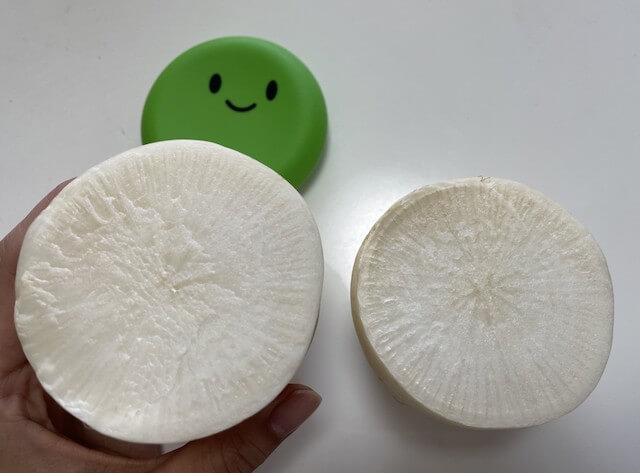 サイゾーウーマン暮らし100均・雑貨「ベジシャキちゃん」はホントに効果あり? 暮らし トレンド商品ガチレビュー 「ベジシャキちゃん」はホントに効果あり? 100均「フレッシュキーパー」と比較したら、予想だにしない結果に…… 2021/04/15 16:30 アウちゃん(ライター) トレンド 5日目の大根、人参 続いて、ダイちゃんキャロちゃんの5日目の結果です。 左がキャロちゃんを被せていた人参ですが、ラップだけの状態だった右側の人参と大きな違いはありませんでした。すこ〜しだけキャロちゃんを被せていた人参のほうが、水分をまだ保ってるような感じ。 左がキャロちゃん装着(C)サイゾーウーマン こちらがダイちゃんの5日目です。 ウンウン、何となくですがパッと見た感じでも、ラップだけだった大根のほうがシナシナとしてるのがわかります。でも、パッケージに乗っていた画像ほどの差は出なかったのが残念。 左のダイちゃん着用は切り口が新鮮(C)サイゾーウーマン 3種類使ってみた感想 「ベジシャキちゃん」を使ってみた結果、「何もせずにそっとしておいたレタスが、一番鮮度を保って傷みもしなかった」という結果になってしまった。 レタスの固い茎に繊細すぎるレタスの葉っぱ。あの茎にベジキャベちゃんを、ノーダメージでレタスにブッ刺す方法を知りたい、と本気で思いました。もしかしたら、キャベツなら、もっとベジシャキちゃんの威力を発揮できたのかな? と少し落ち込んでしまった。 セリア商品とも見た目以外に大きな違いはなく、2つとも「レタスの芯にブッ刺す行為」の弊害が大きすぎる。 そして、ダイちゃんキャロちゃんは、確かに被せていたほうが野菜が瑞々しさは感じたものの、「わざわざ購入するほどのことはないかな〜。ラップで十分」だと感じました。キャロちゃんのほうは、特に人参の切り口の大きさによっては装着できないといったハプニングもあったので、これから購入を検討している人には声を大にして言いたい! 「人参は小さめ・細めじゃないとキャロちゃんは装着できないよ!!」と……。 【総評】 リピートして買いたい度 ★☆☆ 野菜の鮮度保てる度 ★☆☆(茎に刺す行為はない方がいいのかも) 爪楊枝でもよかったんじゃない?度 ★★★ ラップや袋の方が鮮度保てる度 ★★★ 前のページ12345 アウちゃん(ライター) 現在4歳と1歳を育児中の家事&料理がまったくできない主婦。好きな食べ物は激辛料理。しかし料理は夫担当。関西出身、福岡在住のライターブロガー。家事に関しては【見なかった事にしよう】が合言葉。 最終更新:2021/04/15 16:30 Yahoo 212 KITCHEN STORE / トゥーワントゥーキッチン ストア ベジシャキ リンちゃんスダくん 実直すぎるレビューでしょ? 関連記事 「洗濯マグちゃん」だけで、ホントに汚れが落ちるのか検証レビュー! しょうゆ他シミ汚れでテストした驚きの結果は……洗濯物は「畳まない」でOK! ダイソー・ニトリ・スリコほか「進化系ハンガー」6種を比較レビュー!1日8回以上トイレに行く人は“頻尿”かも!? 34歳女性の「恥ずかしくて情けない」会社での赤っ恥エピソードトイレに流せる“挟む生理用品”「シンクロフィット」レビュー! 月経3日目まで使ってみた【長所・短所・注意点】「すぐ接種したい」38%「接種したくない」は42%――新型コロナワクチン、独自アンケート結果【サイゾーウーマン世論調査】 次の記事 石原さとみ「夢は料理YouTuber」 >