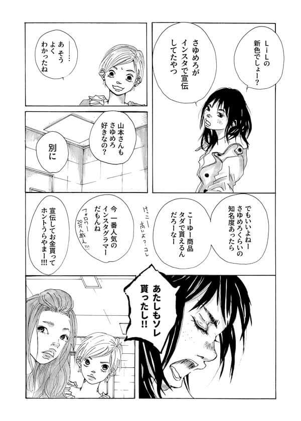 サイゾーウーマンカルチャーマンガマンガ『SNS映えれば死んでもいい! 』#1 カルチャー マンガ『SNS映えれば死んでもいい! 』第1話 「有名人と友達って、絶対ウソだし!」見栄を張って話したらバカにされてイライラ!『SNS映えれば死んでもいい』#1 2021/05/03 11:00 ウーコミ! マンガウーコミウーコミ!女性コミック 「クソ会社のクソ女どもが…私とアイツ、何がちがうの!?」 虚栄心ばかりが強い高卒OL・なつみ。高校の同級生・さゆめろが人気インスタグラマーになったことで、歪んだ承認欲求が暴走していく! ウーコミ!の人気コミック『SNS映えれば死んでもいい! #いいね欲しさに整形しました』、第1話を特別公開いたします。 #1…ゴミ女ども! 私はあんたらと違うんだから 「もっと…もっと私を見て……!」ホテルの一室で”違反行為”をライブ配信する女。ドン引きする視聴者たちの書き込みも、彼女にとっては承認欲求を満たす道具でしかなくて……。 次のページ 私とアイツ、何が違うの? 12次のページ Amazon SNS映えれば死んでもいい! #いいね欲しさに整形しました(1) (ウーコミ!) 関連記事 ママ友から「LINE外し」…? 早めに集合なんて聞いてない!『ママ友はたたりちゃん』#1年上男性との”初体験”は痛くない? 23歳処女だった私は……『年上社長は天然溺愛モンスター』#129歳で処女なのは私だけ!? 初体験の苦い思い出がトラウマに…『溺愛幼なじみのお仕置きエッチ』#1「浮気相手に子どもができた」!? Hの最中に言われた衝撃ワード!『エリート部下はあっちもスゴイ』#1「俺もう限界」オフィスで深夜、男性に迫られたらどうする?『後ろからいれてもいい?』#1 その他の作品を読む
