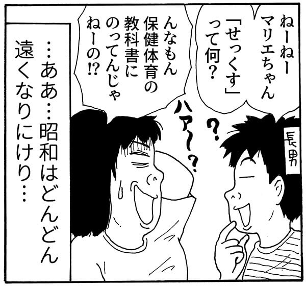サイゾーウーマンカルチャーマンガマンガ『生理終了! 』#2 カルチャー マンガ『生理終了!』第1話 結婚2回、出産4回やらかした後の「更年期」! 安彦麻理絵、昭和生まれの人生を振り返る『生理終了!』#2 2021/05/04 11:00 ウーコミ! マンガ安彦麻理絵ウーコミ女性コミック 「読者の皆さん、トシ取るのって、悪いことばかりじゃないんですよ…?」 20代で恋愛、30代で結婚・出産。そこから十数年経過すれば…オンナの人生には「楽しい閉経」が待っている!? 漫画家・安彦麻理絵が綴るコミックエッセイ『生理終了!~恋愛マンガ家が 50 歳になったら人生こうなる~』、第1話を特別公開いたします。 【前回のあらすじ】 令和元年に50歳を迎えた漫画家・安彦麻理絵。20代には恋愛漫画を描き、40代には子育てや日常のエッセイを描き、そしてこれから描くのは……? #2…生まれ年・昭和44年を振り返ってみれば……。 次のページ 髪の毛ベッタベタのドロくさい時代 12次のページ Amazon 生理終了!~恋愛マンガ家が50歳になったら人生こうなる~(1) (ウーコミ!) 関連記事 更年期は意外と楽しいってホント!? 「50歳になった!」安彦麻理絵が語る閉経のリアル『生理終了!』#1ママ友から「LINE外し」…? 早めに集合なんて聞いてない!『ママ友はたたりちゃん』#1年上男性との”初体験”は痛くない? 23歳処女だった私は……『年上社長は天然溺愛モンスター』#1「俺もう限界」オフィスで深夜、男性に迫られたらどうする?『後ろからいれてもいい?』#1 その他の作品を読む