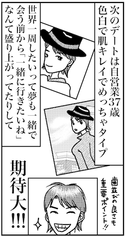 サイゾーウーマンカルチャーマンガこの男、プロフィール詐欺? 嘘だと言って! カルチャー まんが『オバサンと言われても結婚したい!』46話 【アラフォー婚活ルポ】プロフィール詐欺? 同一人物? 神様……どうか嘘だと言って! 2021/05/23 13:30 白戸ミフル(マンガ家) オバサンと言われても結婚したい! ――合コン歴20年以上、累計回数2,500回以上、30代なかばに乳がんで闘病するも、現在は絶賛婚活中のライター・漫画家の白戸ミフルが「アラフォー婚活」の実体験をお届けします! アラフォー中の結婚は成就するのか……!? 【前回まで】 結婚相談所についに入会した42歳。同時に、タップルでの婚活も始めたところ、一気に20人以上とマッチング! 早速、その中の1人と食事に出掛けたところ、顔はいいんだけど、服装のセンスやいろいろ気になる点が……。食事の後には、いきなり「ラブホ行かない?」と言われて「は?」。初回のデートでラブホ行くと思ったか!? 第46話「プロフィール詐欺? 同一人物? 神様……どうか嘘だと言って!」 次のページ え? 誰? 同一人物? 1234次のページ Yahoo 乳がんステージ4だった私が、それでも合コンに行きまくって救われた話/白戸ミフル 関連記事 【アラフォー婚活ルポ】初デートでラブホ行くか!? 逆ギレかよ、コイツ!【アラフォー婚活ルポ】イケメン好きなんですが、大丈夫ですか? 結婚相談所の回答は……【アラフォー婚活ルポ】過去の男の話で大盛り上がり! 結婚相談所のオバちゃんと意気投合!?【アラフォー婚活ルポ】たっかー!!! 初期費用13万円!? これで結婚できると思えば安い……のか?【アラフォー婚活ルポ】決めた! 42歳、結婚相談所に入ります!! その他の作品を読む