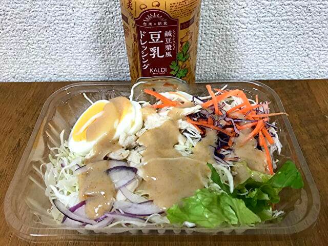 私はシェントウジャンが大好きで、あの味がドレッシングになるというのが想像できなかったのですが、サラダにかけて食べてみたところ、シェントウジャンそのものの味でした。