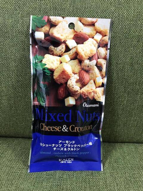 ■ミックスナッツ チーズ&クルトン(35g、税込216円)
