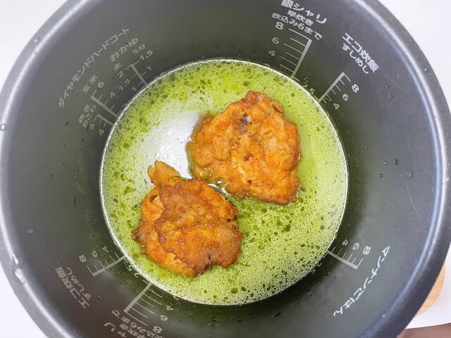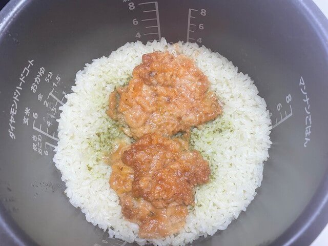 サイゾーウーマン暮らし食べ物ケンタッキー【バジルアボカドチキンライス】 暮らし 【あのツイッターレシピ、やってみました】 ケンタッキー【バジルアボカドチキンライス】、期待してごめんなさい! ケンタの香りが全部消えた……意外な組み合わせの悲しい結末 2021/08/21 19:00 サイゾーウーマン編集部(@cyzowoman) ツイッターレシピ、やってみました そこそこ嫌な予感が強くなっていく 炊飯器に米を入れて2合の目盛りより2~3mm下まで水を注ぎ(A)を加えてひと混ぜする。 (A)とはバジルソース(パスタ用)と塩・ひとつまみなのですが、すごい色になってしまった。自分の中で、そこそこ嫌な予感が強くなっていくのがわかります。さらにオリジナルチキンをのせ、普通に炊きます。 嫌な予感がする色……(C)サイゾーウーマン アボカドは皮をむき、2cm角に切る。 アボカドをカット(C)サイゾーウーマン 前回、フライドチキン炊き込みご飯を作った時は、ご飯を炊いてる最中から部屋中がケンタッキーフライドチキンの香りでいっぱいになり期待度が大だったのだ。しかし今回はどうだろう? なぜかフライドチキンの匂いがしない……。 チキンは確かにおかまに入れたはずなのに……。まさか? ハーブは臭い消しにも効果があると聞いたことがあるが、もしかしてハーブ効果でケンタッキーの良さが消えてしまってるのか? と考えていたらご飯が炊き上がった。 ケンタの香りが殺されてる?(C)サイゾーウーマン お米が! 緑になってる。なんてことだ。 炊きあがったので、チキンの骨を外して身をほぐしながら混ぜ合わせ、アボカドを加えてさっくりと混ぜて器に盛りました。おしゃれな組み合わせ♪ と喜んでもいられない、危険な匂いしかしない一品が出来上がってしまった! 完成!(C)サイゾーウーマン 次のページ 我が家では私以外誰も食べてくれなかった 前のページ123次のページ Yahoo ア・プティア バジルペースト 180g 関連記事 『家事ヤロウ!!!』【豚バラのカリカリ下敷き】、レシピ史上最高ランクだ! ネギとニンニクが素晴らしくマッチング『家事ヤロウ!!!』【ケンタッキーフライドチキン炊き込みご飯】、このうまさ誰が考えたの!? 「ケンタの正しい食べ方」の概念が変わるぞ!『ワイドナショー』絶賛【クーリッシュうまい棒】、作ってみた! 松本人志「うまさのハードルが下がってる」発言に納得の結果に!?『家事ヤロウ!!!』【肉巻きみたらし団子】作ってみたら、一口でため息あふれるウマさ! 安売りのパック団子が満点レシピに激変だ【雪見カレーヌードル】、まずいと思うでしょ? 作ってみたら、うまさ100点! おしゃれな専門店に出てきそうな上機嫌レシピ