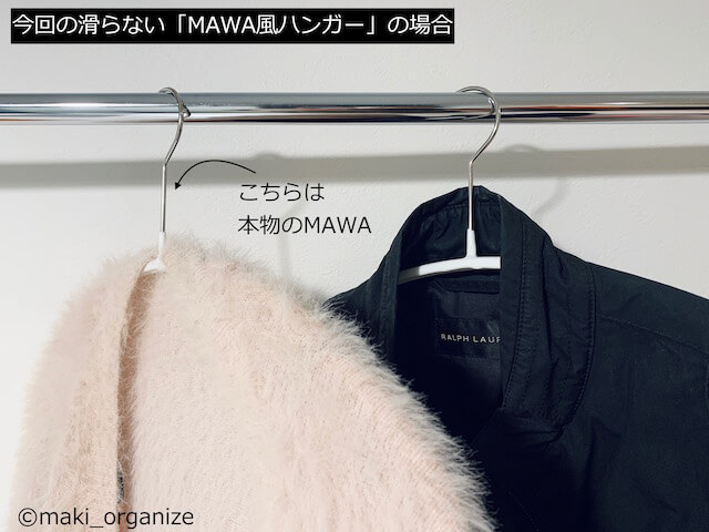 サイゾーウーマン暮らし住まい「マワハンガー」そっくりケユカのコレ優秀! 暮らし 伊藤まきの「お片付けSOS」相談! 収納のプロは「MAWA(マワ)ハンガー」よりケユカのコレ! 本家そっくりなのに100円台で超優秀! 2021/11/05 14:15 伊藤まき(収納ライター) 「お片付け・お掃除SOS」伊藤まき 冬物衣類の悩みといえば、ハンガーにかけたときにずり落ちるニットや厚みのあるアウターの収納ですよね。それら悩みを解決するとして人気なのが「MAWAハンガー(マワ)ハンガー」。ニットやツルツルした素材でも滑り落ちずに収納できて、スリムなボディなのでスッキリ片付きます。 そんな「MAWAハンガー(マワ)ハンガー」は、そっくりの類似品も販売されていますが、整理収納アドバイザーの伊藤まきさんが選ぶのはケユカの「ヨーテ_スチールコーティング 滑らないハンガー」一択なんだとか! その理由を、本家「MAWAハンガー(マワ)ハンガー」と徹底比較しながら解説した記事を再掲します。 ※商品価格、商品名などは2021年2月掲載時点の情報になります。 *********************** 整理収納アドバイザー1級で収納ライターの伊藤まきが、家の中の “片付かない”ちょっとした悩みを“簡単で安く”解決するコツを提案します! 滑らないハンガー「MAWAハンガー(マワハンガー)」と類似ハンガー (C)maki_organize 前回は、洗濯とクローゼットのハンガーを兼用できる、「進化系ハンガー」を紹介しました。今回は、冬物アウターやデリケート素材の衣類に最適な「MAWA風ハンガー」の魅力を比較レポート! (C)maki_organize 前回紹介した「進化系ハンガー」は、Tシャツを掛けたい人、洋服の出し入れを早くしたい人、洗濯物をたたみたくない人に最適でした。 でも、この進化系ハンガーは、フックに毛糸が引っかかったり、冬物や重たいスーツだとたわみやすい欠点も。デリケート素材や重たい衣類衣類には、「MAWA風ハンガー」を用意します。 「MAWAハンガー」はカーディガンやアウターに◎ 服によって揃えるハンガーも変わります(C)maki_organize ワードロープに「とろみシャツ」「カーディガン」「冬物アウター」が多い方には、ドイツ製カリスマブランド「MAWAハンガー(マワハンガー)」をおすすめします。ただし、本物の「MAWAハンガー」を買うと予算がかかりすぎるため「そっくりさん」の提案です。 ニトリをはじめ、多数のメーカーからそっくりアイテムは販売されていますが、筆者が選ぶのはコレです。 次のページ KEYUCA「ヨーテ_スチールコーティング 滑らないハンガー」 12345次のページ Yahoo MAWA ドイツのすべらないマワハンガー レディースサイズ エコノミック 40P 10本組 ライトグレー 関連記事 洗濯物は「畳まない」でOK! ダイソー・ニトリ・スリコほか「進化系ハンガー」6種を比較レビュー!収納のプロが大人気「ハンギングワイヤーバスケット」をキャンドゥ・スリコ・IKEAで比較! 9通りの使用実例セリア大人気「ワイヤーバスケット」、収納のプロがダイソー・スリコ・IKEAと比較&使い分け人気ベストセラー「イオンの保存容器」、収納のプロが徹底ジャッジ! セリア・カインズと比べてわかった、真の最強アイテムは!?ダイソー品切れ大ヒット「ワンプッシュ保存容器」、収納のプロがカインズ・ニトリと徹底比較ジャッジ!