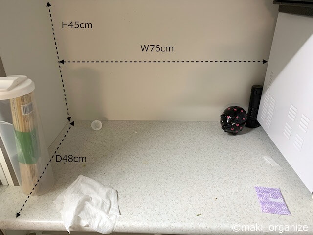 サイゾーウーマン暮らし住まい800円で狭小キッチンに“収納ラック” 暮らし [連載]30代女子の「煩悩部屋」ビフォーアフター ダイソーとイケアのラックで解決! 800円で狭小キッチンボードに“収納ラック”を作るプロのワザ 2021/11/01 19:30 伊藤まき(収納ライター) 「汚部屋」ビフォーアフター 空間を「二分割」で解決! [ポイント]奥行きが深い空間は「二分割」にすると便利! なぜか貯金箱と衛生用品がひょっこり……(C)maki_organize カウンター上にあったモノを収納、移動した後です。写真上のように、「奥行き」と「高さ」が45cm以上ある場合は、空間を「二分割」に使います。 この空間を無駄なく活用するために必要なのは、「コの字ラック」と呼ばれる棚です。これを使えば、「手前と奥」「上段と下段」に空間を分けることができます。 [使用アイテム]高さ調節も簡単! ダイソー「ジョイントラック」 H45×D48cmの空間から、約半分のサイズを用意(C)maki_organize おすすめは、ダイソー「ジョイントラック」です。「コの字ラック」に必要なパーツを揃えると、合計880円(税込、以下同/ライター調べ)です。ダイソー「ジョイントラック」の棚板は、5種類のサイズが揃います。置きたいモノのサイズを先に考えてから、組み合わせを決めましょう。 [1]W30cm×D15cm(110円) [2]W30cm×D30cm(330円) [3]W40cm×D25cm (330円)* [4]W45cm×D20cm(330円)←今回のチョイス [5]W45cm×D25cm (330円)* *転び止めタイプ凹も有り [After.1]予算800円の「コの字ラック」でスッキリ! 毎日使うモノは、出しておくと便利(C)maki_organize カウンター上(オーブンレンジの横)に、ダイソー「ジョイントラック」を設置して「サプリとドリンクの収納棚」を用意しました。下段に、子どものミルクと大人のプロテインをセット。上段は、健康を管理するサプリをまとめました。 [ポイント]快適な出し入れを作るコツ:ラックの高さを調節するときは、「拳ひとつぶんの余白」を取ります。この余裕が、快適な出し入れと散らかり防止のコツになります。 次に、キッチンボード全体の「家事動線」との関係も確認してみましょう。 次のページ [After.2]作業スペースができた! 前のページ1234次のページ 楽天 無印良品・イケア・ニトリのマネできる! 収納アイデア 最新&決定版 関連記事 食器棚の「○○ケース」をなくして、収納力アップ! 家事効率がグングン上がるビフォー・アフター実例集食器棚で「やってはいけないNG収納」5連発! 使いにくくて、散らかりやすい……プロが片付けした結果、こうなったキッチン「引き出し収納」劇的ビフォーアフター12連発! 整理収納のプロが手直しすると、どう変わる?ニトリ・無印良品・100均よりコスパ最強な理由! プロが選ぶ【コーナン】5段ケースで、キッチンクローゼットがスッキリワッツ「のせのせストッカー」で激安スッキリ! 棚のデッドスペース、仕切りがない空間を100均で解決