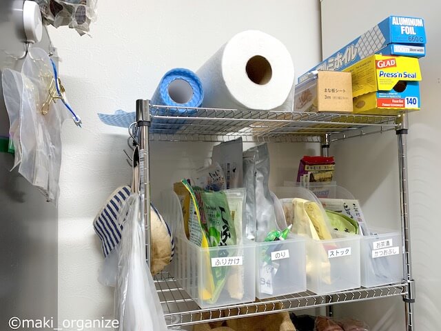 サイゾーウーマン暮らし住まいダイソーで「キッチンラック」が激変 暮らし [連載]30代女子の「煩悩部屋」ビフォーアフター ダイソーのコレが救世主! 使いにくい「トースターラック」が収納力アップ、機能的にスッキリ激変 2021/11/15 19:30 伊藤まき(収納ライター) 「汚部屋」ビフォーアフター [使用アイテム]ダイソーの「ジョイントラック」 高さ調整ができる、小型スチールラックといった感じ(C)maki_organize 低予算で便利なラックといえば、ダイソーの「ジョイントラック」です。キッチン小物の収納に便利な、奥行き25cmを選択しました。カラーボックスの奥行き(約28cm)を想像すると使いやすさがわかりやすいと思います。 [After]3段ラックで全部解決! 冷蔵庫のマグネットボードも広々と使えます(C)maki_organize ダイソーの「ジョイントラック」3段を用意しました。奥行き50cmの木製ラックの上に、小型のスチールラック(W45×D25×H85cm)を載せただけ。ほか、ニトリの「スチールラック 2段(W44.5×D29.5×H67cm)」1,518円(税込/ライター調べ)も検討しました。 [便利ポイント.1]キッチンペーパー類の置くだけコーナー ポイ置き好きな人には、これが一番!(C)maki_organize 毎日使う消耗品の定位置を用意しました。軽めのモノなら、上にポイと置くだけで済みます。キッチンペーパーを、ホルダーにセットするだけでも「名前のない家事」が増えるだけ。専用グッズは、セットの手間や設置の固定が面倒になる場合もあります。 [便利ポイント.2]消耗品と乾物食材のコーナーを用意 ワンアクションで出し入れできる毎日食材!(C)maki_organize 下の段には、毎日使っている「おにぎり用の乾燥食品」のコーナーです。とくに、毎日使っている「のり」や「ふりかけ」は、棚の中に入れずに「オープンラック」のほうが便利! コミックサイズに近い袋状食品は、100均の「A4ファイルスタンド」がおすすめです。 [便利ポイント.3]早めに「食べきりたい食材」も見える化が◎ パン屑キャッチのランチシートも用意(C)maki_organize トースター上には、常温野菜やパン(食べきりたい食材)のコーナーに。ちなみに、トースターより奥行き(D25cm)が狭いので「放熱」の点も安心です。トースターを使う時は、手前に出して使います。 次は、ラックの下段を見直します。 次のページ [下段 Before]棚は奥行きが深いほど、使えない! 前のページ123次のページ 楽天 100均ファンmagazine!(令和最新版) 関連記事 食器棚の「○○ケース」をなくして、収納力アップ! 家事効率がグングン上がるビフォー・アフター実例集キッチン「引き出し収納」劇的ビフォーアフター12連発! 整理収納のプロが手直しすると、どう変わる?ニトリ・無印良品・100均よりコスパ最強な理由! プロが選ぶ【コーナン】5段ケースで、キッチンクローゼットがスッキリワッツ「のせのせストッカー」で激安スッキリ! 棚のデッドスペース、仕切りがない空間を100均で解決IKEA大人気「3段ワゴン」のNG収納例!? “ゴチャゴチャ”ラックをプロが正しくお片付け! 大小2種類も使用比較