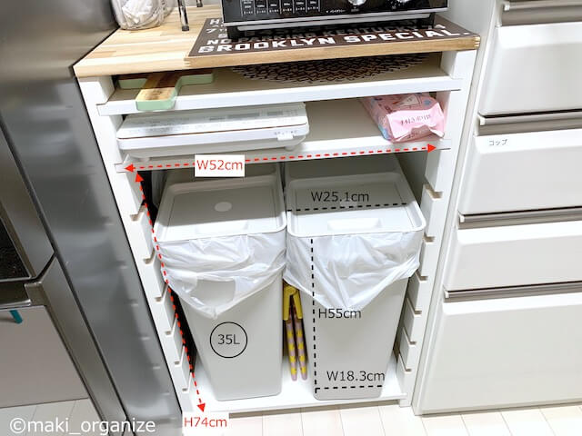 サイゾーウーマン暮らし住まいダイソーで「キッチンラック」が激変 暮らし [連載]30代女子の「煩悩部屋」ビフォーアフター ダイソーのコレが救世主! 使いにくい「トースターラック」が収納力アップ、機能的にスッキリ激変 2021/11/15 19:30 伊藤まき(収納ライター) 「汚部屋」ビフォーアフター [下段 Before]棚は奥行きが深いほど、使えない! 体を曲げて詰め込む作業も、続かない家事労力(C)maki_organize 木製のフリーラックの下部。棚の奥行きが50cmもあるので、何を入れても使いにくかったそうです。収納箱の種類から、Kさんの悪戦苦闘っぷりを想像できます。 ★改善したい内容 [1]キッチンにゴミ箱を置きたい [2]IHクッキングヒーターを置きたい [3]子ども用脚立を冷蔵庫周りに置きたい [検証]モノをゼロにして、サイズ感を確認する 棚板を2枚、抜きました(C)maki_organize 上段と同じように、モノをなくしてサイズを確認しました。中板は外してあります。 食材のストックは出入りが頻繁のため、奥行きが深い棚より浅い棚が便利。そのため、食材はラックではなくミニクローゼットに収納しました。棚の空間は、W52×D46×H74cmです。ここに入れられるゴミ箱を探します。 [下段After]イケアの「ホルバル 35L」がぴったり ゴミ箱上には、ゴミ袋収納も完備(C)maki_organize ゴミ箱は、イケアの「ホルバル 35L」¥1,299(税込/ライター調べ)を選びました。ふたの半分が、小窓のように開くデザインです。レジ袋にゴミを溜めてから、ゴミ箱に入れる習慣のあるKさんにぴったりの方式です。 そのほか、置く場所がなかった「IHコンロ」「塩ビのランチマット」「子ども用脚立」の定位置も確保できました。 [便利ポイント.1]ゴミ箱の「ふたの開け方」でラックの高さが変わる! 可燃ごみ(週3ペース)に合わせた容量(C)maki_organize ゴミ箱は観音開きのペダル型、フロントオープン型、全開式、半折式、フタ式など多数あります。 Kさん宅の場合、低いラックに入ること、清掃の手間が少ない形状、45Lゴミ袋にちょうど良い容量、そして低コスパという条件で選びました。また、100均のキャスターを付ければ「可動型ゴミ箱」にもなります。 [まとめ] この投稿をInstagramで見る 整理収納アドバイザー|伊藤まき|東京区内(@maki_organize)がシェアした投稿 ダイソー「ジョイントラック」を使った、トースターラックはバックナンバーでも登場しています。横幅、奥行き、高さに合わせてカスタムできるので、省スペース。高さを利用したい空間におすすめです。 例えば、洗面所のコスメ収納、トイレの小物収納、玄関の下駄箱追加などにもOK! 困ったときの便利収納になります。 前のページ123 伊藤まき(収納ライター) 収納ライター・兼・整理収納アドバイザー1級。クリンネスト2級。おがくず工場に生まれ、ホテル清掃員、国鉄系レストランの厨房、内装会社、デパートの搬入搬出など“家事の土台”を極めた生活を経て、出版社入社ののち独立、現在に至る。モノを手放すほど「幸運」が舞い込むジンクスを何度も体感! 貧乏神と決別した実体験をもって、整理収納の威力をお伝えします。 記事一覧 Instagram:@maki_organize 最終更新:2021/11/17 15:48 楽天 100均ファンmagazine!(令和最新版) このラック、まるまる再現させていただく所存 関連記事 食器棚の「○○ケース」をなくして、収納力アップ! 家事効率がグングン上がるビフォー・アフター実例集キッチン「引き出し収納」劇的ビフォーアフター12連発! 整理収納のプロが手直しすると、どう変わる?ニトリ・無印良品・100均よりコスパ最強な理由! プロが選ぶ【コーナン】5段ケースで、キッチンクローゼットがスッキリワッツ「のせのせストッカー」で激安スッキリ! 棚のデッドスペース、仕切りがない空間を100均で解決IKEA大人気「3段ワゴン」のNG収納例!? “ゴチャゴチャ”ラックをプロが正しくお片付け! 大小2種類も使用比較 次の記事 滝沢秀明、細木数子さんお別れ会に供花ナシ >