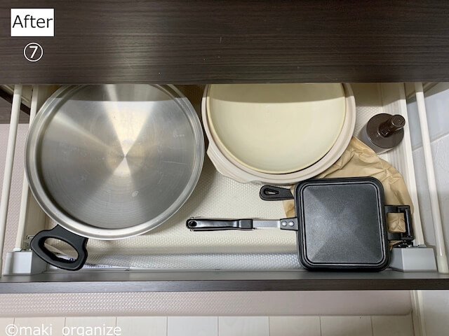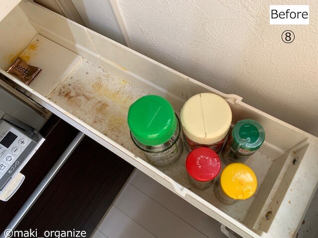 サイゾーウーマン暮らし住まいキッチン収納ビフォーアフター 暮らし [連載]30代女子の「煩悩部屋」ビフォーアフタ キッチン「コンロ下&シンク下」収納、ビフォーアフター8連発! 100均アイテムだけでプロがスッキリ手直し 2021/11/22 19:30 伊藤まき(収納ライター) 「汚部屋」ビフォーアフター [7_Before]コンロの下、2段目(最下段) シートに油汚れがべったり(C)maki_organize コンロ下の最下段です。めったに使わない大鍋、スキレットが入っていました。引き出しのサイドは、壁に当たるので取り出しにくい場所です。 [7_After]使用頻度の低い「調理道具収納」で正解 キャンプで使うことも多い、グリルホットパン(C)maki_organize こちらは、Kさんの収納法ままでOK! 使用頻度の低い大鍋、季節の鍋、イベント用などを収めました。油処理グッズなども、ここに置きます。 [7のポイント]鉄鍋は、紙モノで油漏れをブロック 紙袋に挟めば傷防止にも◎(C)maki_organize 油を浸透しておきたいスキレット(鉄の鍋)には、紙袋を使います。油漏れをしても、面倒な掃除をしなくて済む、「凹型加工した段ボール」もおすすめです。100円ショップが少ない頃は、新聞紙、ダンボール、空き箱で収納箱を作るのが定番でした。 [8_Before]コンロ横の引き出し 汚れやすいので虫に注意(C)maki_organize コンロ横の引き出しを、スパイスラックに使う方も多いと思います。ほか、出汁(和風、中華、洋風)や乾物(ごま、唐辛子、乾燥わかめ)などの食材も◎。大型のキッチンツール(おたま、箸)などを入れる家もあります。 [8_After]コンロ横の引き出し 開封済みの七味は、冷蔵庫保管へ(C)maki_organize キッチンのあちこちにあった、調味料小瓶(完全密封タイプ)をまとめ入れました。粉漏れが出やすいので、虫がわきやすい容器は入れないほうが◎。ほか、換気扇下の愛煙家なら「タバコセット」にしてもOK。 [8のポイント]外せるパーツは、お湯で丸洗いが早い 汚れを浮かしてから丸洗い(C)maki_organize 調味料用の引き出しは、どうしても汚れやすくなります。虫が好む環境にならないように、パーツを外して洗浄しました。モノを収納する時はすべて、ペーパーナプキンやアルミシートを敷いて、汚れをブロックします。 【まとめ】 [Before]出しっぱなしだらけのアイテムが…… (C)maki_organize 新しい生活と育児で、「食材のストック」が急に増えたとKさん。急に増えた道具と食材に囲まれ、しんどい状態でした。 [After]ぜんぶ引き出しの中へ収まりました (C)maki_organize キッチンの収納すべてを見直したことで、コンロ上に置きっぱなしだった鍋類もすべて収納できました。片付かないと思ったら、引き出しの中から「見直し収納」をするのが一番です。 動画で見たい方は、コチラをチェック! この投稿をInstagramで見る 整理収納アドバイザー|伊藤まき|東京区内(@maki_organize)がシェアした投稿 前のページ1234 伊藤まき(収納ライター) 収納ライター・兼・整理収納アドバイザー1級。クリンネスト2級。おがくず工場に生まれ、ホテル清掃員、国鉄系レストランの厨房、内装会社、デパートの搬入搬出など“家事の土台”を極めた生活を経て、出版社入社ののち独立、現在に至る。モノを手放すほど「幸運」が舞い込むジンクスを何度も体感! 貧乏神と決別した実体験をもって、整理収納の威力をお伝えします。 記事一覧 Instagram:@maki_organize 最終更新:2021/11/22 19:45 Yahoo フライパンラック ポットラック 鍋ラック 鍋蓋スタンド フライパンスタンド ふたスタンド シンク下収納ラック キッチン収納 多機能 パンラック まな板 コロリスト買いに行ってきます! 関連記事 ダイソーのコレが救世主! 使いにくい「トースターラック」が収納力アップ、機能的にスッキリ激変シンク・コンロまわりの「片付けしんどい」問題を解決! 散らかったゴチャゴチャがスッキリ、ビフォーアフター実例ダイソーとイケアのラックで解決! 800円で狭小キッチンボードに“収納ラック”を作るプロのワザ食器棚の「○○ケース」をなくして、収納力アップ! 家事効率がグングン上がるビフォー・アフター実例集食器棚で「やってはいけないNG収納」5連発! 使いにくくて、散らかりやすい……プロが片付けした結果、こうなった 次の記事 本当は魅力的だと思う都道府県は? >