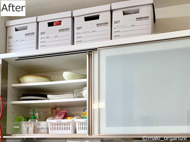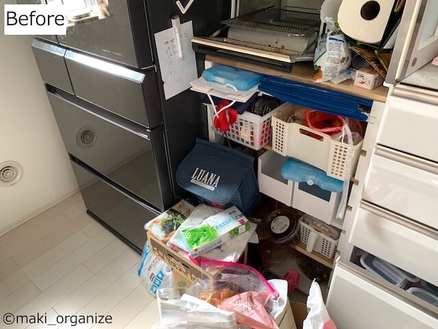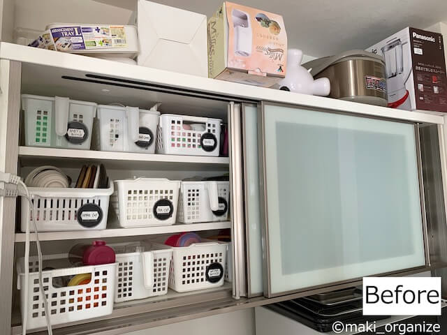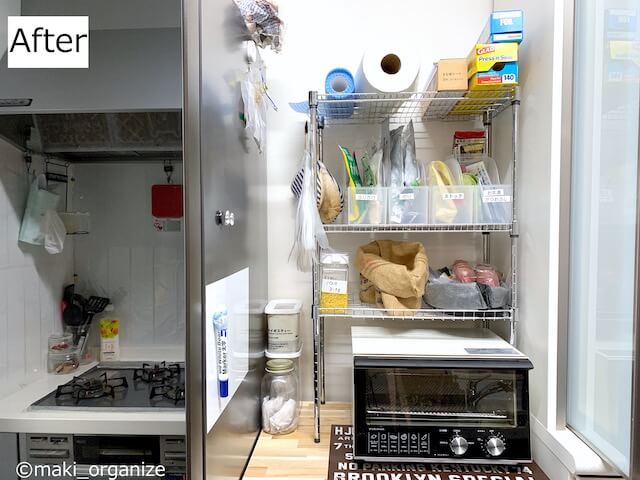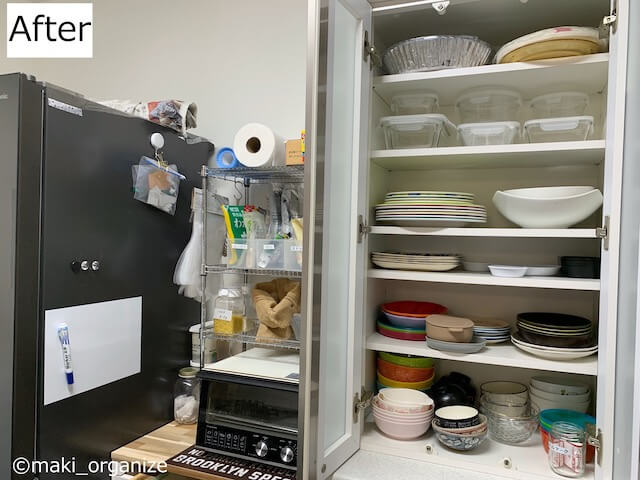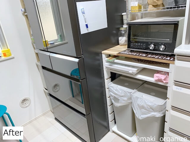 サイゾーウーマン暮らし住まいキッチンの片付け12連発! 暮らし [連載]30代女子の「煩悩部屋」ビフォーアフター キッチンの片付け12連発! モノで溢れた食器棚、トースターラックまでプロの手直しビフォーアフター 2022/01/18 11:30 伊藤まき(収納ライター) 「汚部屋」ビフォーアフター Before.5トースターラックまわり [After.5]トースターラックまわり ラック3段で合計2,000円です(C)maki_organize トースターの両サイドは、冷蔵庫と食器棚があるため「作業台」の役割も兼ねると便利。用意したのは、ダイソーの「ジョイントラック」。トースターは、使うときだけ手前に出せばOK。飲み物を入れたり、ふりかけをかけたり、パンにジャムを塗ったりと食事の準備も楽になりました。 [Before.6]トースターラック下 奥行きが深くて、収納ケースが潜ってしまう(C)maki_organize [After.6]トースターラック下 イケアのゴミ箱は、半開きの蓋タイプ(C)maki_organize 入居時の隙間に合わせて用意したフリーラックのため、奥行きが深くて「使いにくい」とお悩みでした。仕切り板の数を減らして、新しくゴミ箱を設置。置く場所に困っていた、IHコンロなどの定位置が決まりました。 [ポイント]ダイソーの「スチールラック」でスッキリ! もっと知りたい方は、【27回】「トースターラック」へ ダイソーのコレが救世主! 使いにくい「トースターラック」が収納力アップ、機能的にスッキリ激変連載企画「30代女子の「煩悩部屋」ビフォー・アフター」の新シーズンが始まりました。今回は、汚部屋あらため「汚家(おうち)」をまるごと片付けます! クライアントは板橋区・3S...サイゾーウーマン2021.11.15 [Before.7]キッチンの食器棚(小) お子さんが自分でコップが出せない高さに……(C)maki_organize [After.7]キッチンの食器棚(小) 拳ひとつぶんの余裕で、食器を出しやすく!(C)maki_organize 食器の出し入れを快適にするため、収納ケースをぜんぶ外して「棚の高さ調整」を見直しました。食器の使用頻度にあわせた配置、2種類までの重ね置きなど「食器の置き方」で出し入れがスムーズになります。 [ポイント]快適な出し入れは、置き方と棚の位置 もっと知りたい方は、【23回】キッチンの「食器棚・小」へ 食器棚で「やってはいけないNG収納」5連発! 使いにくくて、散らかりやすい……プロが片付けした結果、こうなった連載企画「30代女子の「煩悩部屋」ビフォー・アフター」の新シーズンが始まりました。今回は、汚部屋あらため「汚家(おうち)」をまるごと片付けます! クライアントは板橋区・3S...サイゾーウーマン2021.10.18 [Before.8]キッチンの食器棚(大) 食器棚上は、不用品コーナーでした(C)maki_organize [After.8]キッチンの食器棚(大) 食器棚上は、お菓子作りグッズコーナーに(C)maki_organize こちらも、食器をグループに分別した収納ケースを外しました(離乳食の準備グッズを除く)。手を伸ばす高さにあるため、使用頻度の低い大皿だけ取り出しやすく配置し直します。閉めっぱなしの右の引き戸は、使用頻度の低い来客用カップと使い捨て容器の保管場所です。 [ポイント]食器棚の収納ケースは、出し入れが増えるだけ もっと知りたい方は、【24回】キッチンの「食器棚・大」へ 食器棚の「○○ケース」をなくして、収納力アップ! 家事効率がグングン上がるビフォー・アフター実例集連載企画「30代女子の「煩悩部屋」ビフォー・アフター」の新シーズンが始まりました。今回は、汚部屋あらため「汚家(おうち)」をまるごと片付けます! クライアントは板橋区・3S...サイゾーウーマン2021.10.25 次のページ Before.9レンジオーブンまわり 前のページ123次のページ 楽天 Casa BRUTUS特別編集 美しいキッチンと道具。 関連記事 汚部屋の衝撃ビフォーアフター25連発! 大量の荷物の山、モノで埋もれた部屋が劇的スッキリキッチン・浴室、汚れゴッソリ衝撃ビフォーアフター! プロが伝授「オキシクリーン」カンタン掃除術ダイソー「シューズケース」で、冷凍室の入り切らない食材問題をズバリ解決! ビフォーアフター「冷蔵庫」収納は100均のコレでスッキリ! プロの手直しビフォーアフター6連発100均とカラボだけで大変身! 整理収納のプロが、「物置き部屋」をプレイルームにスッキリ片付け