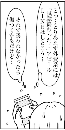 サイゾーウーマンカルチャーマンガ合コンの彼からLINEが来ない カルチャー まんが『オバサンと言われても結婚したい!』106話 【アラフォー婚活ルポ】合コンのイケメンからLINEが来ない…… 2022/02/16 13:30 白戸ミフル(マンガ家) オバサンと言われても結婚したい! 誰からも連絡がこない 次のページ ムシャクシャした私は…… 前のページ123次のページ 楽天 【POD】合コン・アンド・ザ・シティ 恋活・婚活女子の合コンマニュアル 関連記事 【アラフォー婚活ルポ】合コンの男子、完全に友達狙いやんけ……【アラフォー婚活ルポ】まさか、セフレ扱い!? 2回目のデート中の一言に衝撃【アラフォー婚活ルポ】婚活仲間から「はあ!?」「そんなに見た目が大事なの!?」と言われてしまった【アラフォー婚活ルポ】『既婚者ですよね?』イケメンの誘いに婚活仲間がビシッと一言!【アラフォー婚活ルポ】バレンシアガのデカいロゴT着る男って、どう思う? その他の作品を読む