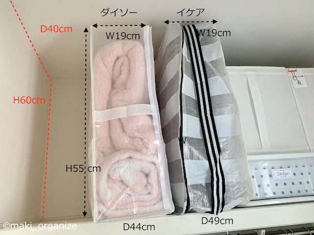 サイゾーウーマン暮らし住まいイケア「スクッブ」そっくりダイソーアイテム 暮らし 伊藤まきの「お片付けSOS」相談! イケア人気アイテムそっくり! ダイソー330円「ふた付収納ボックス」はマルチな必需品 2022/04/04 19:30 伊藤まき(収納ライター) 「お片付け・お掃除SOS」伊藤まき ダイソー[2]ふた付収納ボックス ポケット付 330円 ふた付収納ボックス 330円(C)maki_organize ■サイズ:W44×D55×H19cm(色:クリアホワイト、グレーの2色) 収納スペースが少ないとお悩みの家に、ベッド下収納サイズの登場です。デッドスペースを収納に活用したいけれど、ホコリが心配という方でも「ジッパー付き」なら大丈夫。しかも、このサイズだけ「ラベルポケット」が付いています。 IKEA「ヨールスニグ」とダイソー商品を比較! ヨコ置き、タテ置きが選べるのも◎(C)maki_organize IKEA「ヨールスニグ」(499円/税込)との比較です。表記サイズは、横幅5cmほど小さいだけで、容量的にはほぼ同じです。また、100均にありがちな「ビニール臭」問題も、筆者的には感じませんでした。 IKEAの収納ケースのように、タテ置きもできる! タテ入れ収納できる「自立力」もばっちり!(C)maki_organize 実際に並べると「ダイソー」の高さ55cmが謎ですが、商品によってサイズが少し変わるのかもしれませんね。生地や縫製の頑丈さはイケアに劣ると感じるモノの、自立できるので◎とします。 クローゼット上段の「布団収納」にもバッチリ! クリアボックスなので、目で確認できます(C)maki_organize 寝具を「タテ入れ」収納できるケースとしては、一番の低コスパだと思います。過去記事でも、5種類の低コスパ「布団収納ケース」を比較していますが断トツで良いと感じました。「ダイソー新商品」のレベルアップが早くて、びっくりです。 ラベル付きだから、グループ収納にも◎ 2つの取手(タテ紐)とラベルポケット付き!(C)maki_organize ダイソーのシリーズ商品ですが、これだけ「ポケットラベル」が付いていました。名刺サイズの紙を入れられるので、災害グッズ、スポーツグッズ、趣味グッズとグループ収納にまとめ置きしても良いですね。 次のページ ダイソー[3]マルチバッグ 330円 前のページ1234次のページ Yahoo 布団収納ケース 布団収納袋 羽毛布団 収納袋 羽毛布団収納ケース 羽毛ふとん収納袋 布団袋 3個セット 防虫・防 関連記事 イケアの大ヒット「スクッブ」を超えた! ダイソー400円「ベッド下収納ボックス」、衣替えに優秀すぎる4つの魅力クローゼット収納で「ダイソー」「イケア」が活躍! 汚部屋スッキリのコツをプロが解説、劇的ビフォーアフターダイソーとセリアから登場! 収納のプロたちが歓喜「フタ付クリアボックス」詳細紹介【サイズ・色・使用実例】ダイソー収納アイデアまとめ! 収納のプロが厳選「本当に使える」アイテム24選【2022年3月最新版】ダイソー優秀商品「ミニ突っ張り棒」で、トイレの“収納と掃除”が快適に! 収納のプロが教える、超簡単「空中収納」テクニック