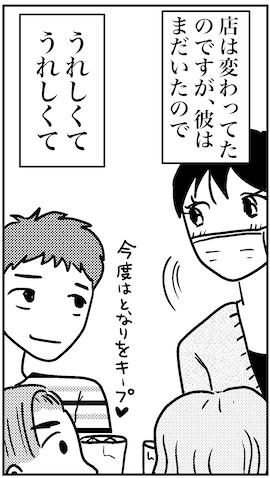 【前回まで】  43歳、婚活中。2021年の年末になり、アラフォー婚活仲間と3人で反省会を開催! 仲間の一人、ミサはアプリデートに出かけた先で、隣のテーブルに「めっちゃタイプ」の男性を発見。どうやら隣は街コン中の集団で、一緒に飲もうと誘われたけど、自分は今デート中。結局、デート相手と解散した後、隣の街コン集団と合流することに。