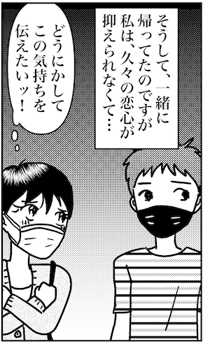 サイゾーウーマンカルチャーマンガ久々の恋心を抑えきれず突撃チュー!! カルチャー まんが『オバサンと言われても結婚したい!』124話 【アラフォー婚活ルポ】久々の恋心を抑えきれず、突撃チュー!! 2022/04/20 13:30 白戸ミフル(マンガ家) オバサンと言われても結婚したい! 久々の恋心が抑えられなくて 次のページ 突撃チュー! 前のページ123次のページ Yahoo 乳がんステージ4だった私が、それでも合コンに行きまくって救われた話/白戸ミフル 関連記事 【アラフォー婚活ルポ】最後のアプリデートでビビビッ!!! めっちゃタイプだッ!【アラフォー婚活ルポ】結婚相談所も再スタートしたけど、婚活してる暇がないよ【アラフォー婚活ルポ】婚活仲間は魔性の女!! 合コンで見た驚きの言動【アラフォー婚活ルポ】合コンで“強烈ロックオン”! 婚活仲間のすげ~アプローチに呆然……【アラフォー婚活ルポ】もう43歳、時間がない! 惜しまず動かないと! その他の作品を読む
