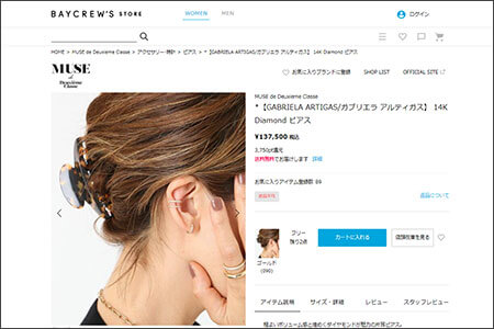 憎いことに、通販サイト「ベイクルーズストア」には、私が持つイヤーカフとお揃いのピアスを重ねづけしている写真が掲載れているのよお! そんなことされたら、ますます欲しくなっちゃうゥゥゥ!