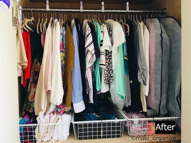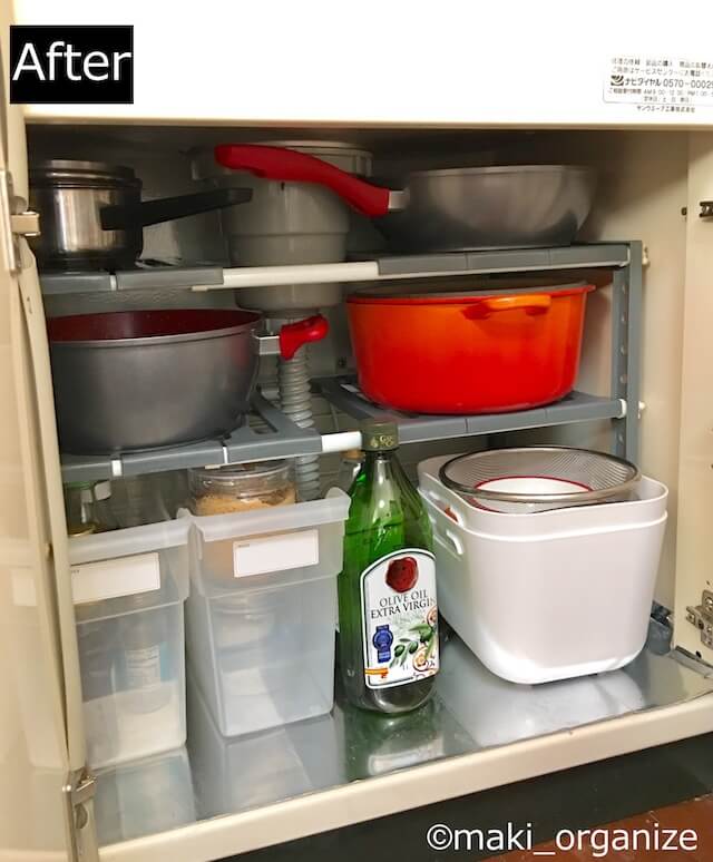 サイゾーウーマン暮らし住まいやってはいけないNG収納 暮らし 伊藤まきの「お片付けSOS」相談! やってはいけないNG収納、プロが手直し! ビフォーアフターでこんなに変わった! 2022/05/23 19:30 伊藤まき(収納ライター) 「お片付け・お掃除SOS」伊藤まき 【NG収納.8】シンク下、洗面下収納の突っ張り棒テクニック コンロ上に鍋が起きっぱなしでした(C)maki_organize シンク下や洗面下の収納は排水トラップがあって難しいですよね。収納アイデアの中には、ワイヤーネットや突っ張り棒を使った収納法もありますが、よく使う道具を置く場所なので「専用のラック」を用意したほうが早いです。 【After】洗面下、シンク下収納は「専用ラック」を買う 道具は全て、ワンアクションで出し入れ(C)maki_organize 写真上の「シンク下伸縮ラック」は、ホームセンターで980円でした。安くて1,200円前後なので、購入した方がストレスなく使えます。100均グッズを組み合わせたアイデア収納もありますが、意外と予算が膨らみます。 【NG収納.9】クローゼットの引き出し収納 クローゼットの扉に服が山積み(C)maki_organize クローゼットの「扉を開ける」「引き出しを開ける」「引き出しに戻す」という行為が面倒になり、クローゼットのドアに服を引っ掛けるようになったケース。「掛けるだけ」は楽ちんですが、気持ち的には落ち着きません。 【After】クローゼットを開けっぱなし、ハンガー収納 ハンガーにかけたくない日は、置くだけ(C)maki_organize クローゼットの扉を開けっぱなしにして、ハンガーを掛ける収納にしました。取り出しやすいよう、7割だけ収納する形にしています。毎日出し入れをする下着、タオル、靴下などはIKEA「ヨナクセルワイヤーバスケット」500円(税込)へ置くだけ。 レイアウトの動線も考えながら、取り出すまでの「アクション数」を考えます。洋服のほか、キッチン、玄関、掃除道具なども同じです。 【NG収納.10】デザイン重視の「中が見えない」収納 色落ちや木材の屑など、汚れやすかった(C)maki_organize 写真上は、筆者が使っていたバスケットの収納です。ナチュラルにこだわって買い揃えたものの、見えない・使いにくい・汚れるので手放しました。部屋の中の1~3個の収納ボックスなら「目隠し収納」もアリですが、棚の中まで見えないのは不便です。 【After】在庫管理も簡単な「透明のボックス」に ラベルも不要で、在庫確認も簡単(C)maki_organize 扉の中へしまうモノは、すべて「透明のボックス」に入れ替えました。使っていないモノが目立つようになったので、ムダなモノを買うことがなくなります。おすすめの透明ボックスは、「ナカバヤシのファイルボックス」。 次のページ 【NG収納.11】押し入れに「詰め込みすぎ」収納 前のページ12345次のページ セブンネット 片づけ下手でもおしゃれな部屋って言われたい! 関連記事 食器棚で「やってはいけないNG収納」5連発! 使いにくくて、散らかりやすい……プロが片付けした結果、こうなったホコリ・ダニ・カビを呼び寄せる! やってはいけない本棚の「モノの置き方」「片付け方」やってはいけない「オシャレ収納」! キッチンが“黒カビ”パラダイスになるNG例セリア・ワッツの名品「穴あきバスケット」110円は即買い! 収納のプロが教える10の使用例IKEA(イケア)「700円以内」収納グッズ、買うのはコレ! 収納のプロがベスト愛用品を紹介