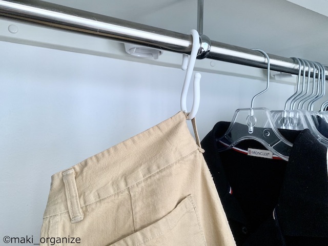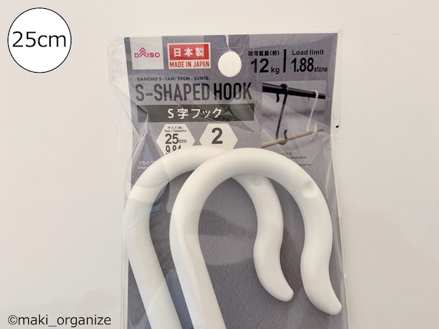 サイゾーウーマン暮らし住まいダイソー「スワン型S字フック」は買い! 収納のプロが用途“最強”フックと太鼓判 暮らし 伊藤まきの「お片付けSOS」相談! ダイソー「スワン型S字フック」は買い! 収納のプロが用途“最強”フックと太鼓判 2022/07/18 19:00 伊藤まき(収納ライター) 【ダイソー】S字フック S-SHAPED HOOK (16cm) 商品番号:4997642165425(C)maki_organize 大きめの16cmも使いやすいサイズです。12cmと同じく、クローゼットやカーテンポールにもOK。吊り下げ収納をすればたくさん掛けることができます。筆者的には、12cmと16cmの2種類が使いやすいサイズです。 使用例(1)家中の「手すり」にはめてロック固定 一般的な手すりの直径は28~32mm程度(C)maki_organize 階段はもちろん、トイレ、浴室にもある家も多い「手すり」にガチッとはめ込みます。筆者宅では、階段上に設置したペットフェンス&ベビーゲートと「手すり」をロック用に活用しています。ドアストッパーのように落ちずに、固定できる点がとても便利です。 使用例(2)たくさん掛けられる吊り下げ収納に! フックのカーブが長いので、バッグにも◎(C)maki_organize クローゼット内でボトムスを収納する場合、「掛ける」が一番楽で、シワができません。耐荷重約10.5kgだから、デニムはもちろん、バッグや帽子も2~3個掛けることができます。フックに太さがあるので「掛けやすさ」も抜群です。 使用例(3)屋外や車の中でも活用! キャンプやピクニックでも役立ちます(C)maki_organize 100均で販売しているS字フックの中で、最も「どこでも使える」タイプ。手すりやポールにガチッとはめ込んで使うも良し、凹凸に掛けるも良しと幅広い使い方が期待できます。屋外や車の中でも活躍できる万能フックです。 【ダイソー】S字フック S-SHAPED HOOK (25cm) 商品番号:4997642165487(C)maki_organize 一番大きなサイズ、25cmです。写真上のパッケージ見本のように、クローゼットポールや干し竿に「ダブルハンガー」としても使えます。ほか、ベランダや車庫など屋外の使用にも◎です。 使用例(1)室内干しや、プラントハンガーなどに 長く使っていますが、折れません!(C)maki_organize 長めのデザインなので「手が届きやすい位置」での使用が多くなります。特に室内干しやプラントハンガー(観葉植物を吊るす)などにも便利。サイズによっては、風呂椅子や湯桶も掛けることができます。 ちなみに、ダイソー「S-SHAPED HOOK」シリーズと似た商品がセリアにあります。 【セリア】S字フック JOY.HANGER(MサイズとLサイズ) 先端に丸みを帯びたデザインが、セリアの特徴(C)maki_organize セリアの「JOY.HANGER」シリーズです。全5種類のサイズを確認しましたが、ダイソーと同じ「スワン型」になるのは、MとLサイズのみです。ミニとSサイズは、フックのバネ感と角度が弱いので今回の内容に当てはまりません。 パッケージ違いの別カラー有り。ともに(株)フジサキの製品(C)maki_organize セリアの「JOY.HANGER」シリーズには、別パッケージのカラフル版もあります。こちらもMとLサイズだけおすすめです。白、黒、グレーのほかにベージュやブルーも展開されています。収納グッズをそろえる時は、内装の建具に合わせて「色を統一」するとスッキリ見えますよ。 【まとめ】ダイソー「スワン型 S字フック」 セリアのモノは赤いマスキングテープをつけました(C)maki_organize ダイソーとセリアの、各種サイズを並べてみました。先端のデザインと色の違いがあるだけで、サイズ感はほぼ同じです。手持ちの「S字フック」にストレスを感じたことがある方は、まずは「MとLサイズ」のお試しをおすすめします。これまでの、落ちる、ズレる、横ブレするなどのイライラから解放される名品です。 ズレずに「キャッチする動画」もチェック! この投稿をInstagramで見る 整理収納アドバイザー|伊藤まき|東京区内(@maki_organize)がシェアした投稿 前のページ123 伊藤まき(収納ライター) 収納ライター・兼・整理収納アドバイザー1級。クリンネスト2級。おがくず工場に生まれ、ホテル清掃員、国鉄系レストランの厨房、内装会社、デパートの搬入搬出など“家事の土台”を極めた生活を経て、出版社入社ののち独立、現在に至る。モノを手放すほど「幸運」が舞い込むジンクスを何度も体感! 貧乏神と決別した実体験をもって、整理収納の威力をお伝えします。 記事一覧 Instagram:@maki_organize 最終更新:2022/07/18 19:07 次の記事 関ジャニ∞ライブに賛否 >