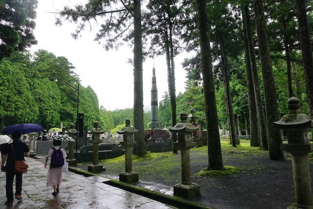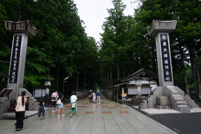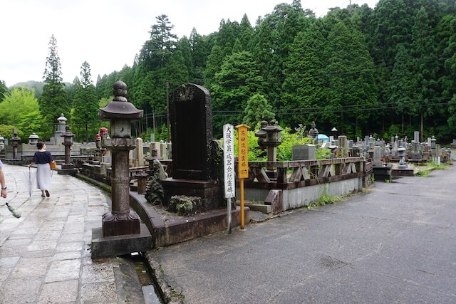 サイゾーウーマンスポットジャニー喜多川さんのお墓参りガイド 男性アイドル 高野山奥之院へ参拝 ジャニー喜多川さんのお墓参りガイド【高野山奥の院|場所&正しい参拝ルート】 2022/07/30 14:00 上江洲規子(かみえしゅう・のりこ) スポット ジャニー氏のお墓の場所&参拝ルート それでは、ジャニー喜多川家の墓所を訪ねてみよう。 もし、正式な参拝方法にこだわるなら、まずは一の橋から御廟まで参拝すると良いだろう。ケーブルカーの高野山駅から「奥の院口」まではバスが出ている。車ならば一の橋の前に駐車場があるが、民間のもののようで10台弱しか停車できず、有料だ。 一の橋から御廟までの距離は2キロ強で、一の橋・中の橋、御廟橋と、川を3つ渡る。 一の橋(写真:サイゾーウーマン) 喜多川家の墓所にお参りすることだけが目的ならば、中の橋を起点にするとよい。バスなら「奥の院前」バス停で降りると良いだろう。車ならば、すぐ前にある中の橋駐車場が利用できる。普通乗用車なら186台駐車可能で、こちらは無料だ。 「奥の院前」へ行くバス(C)サイゾーウーマン 奥之院入り口には「南無大師遍照金剛」と書かれているのが目に入る。 奥之院入り口(中の橋入口)(写真:サイゾーウーマン) 遍照金剛とは「大金剛のように不滅であり、光が遍く照らしている」の意味で、大日如来のこと。大日如来は空海の守り本尊だ。南無は「私は帰依します」だから、「南無大師遍照金剛」は、「弘法大師空海に帰依します」という意味になる。 門を入るとユニークな墓所が次々目に入る。まず目につくのは、ロケット型をした新明和工業株式会社の慰霊碑だ。ほかにも社団法人日本しろあり対策協会のしろあり供養塔や、福助の石仏が鎮座する福助株式会社の感謝の碑など、興味を惹かれるものも多い。 新明和工業の慰霊碑(写真:サイゾーウーマン) 福助(写真:サイゾーウーマン) そのうち道は右にやや湾曲し、右側に観音像が見える。そこから30メートルほどで、右側に「花柳流慰霊塔」と書かれた看板が見えるので、右折しよう。 目印となる花柳流慰霊塔の看板(写真:サイゾーウーマン) 約30メートル先に橋があるのでこれを渡り、また30メートルほど進めば左側、奥まった墓所から2つ目が喜多川家の墓で、ジャニー氏もここに眠っている。 (写真:サイゾーウーマン) 墓碑には、ジャニー喜多川氏のほか両親と兄の法名と俗名、没年月日が刻まれている。ジャニー氏の法名は「宝澍院諦応擴道大居士」だ。 左隣には藤島家の墓があり、ジャニー氏の姉である藤島メリー泰子氏、義兄にあたる藤島泰輔氏が眠っている。 都会から離れた山の上で眠るジャニー氏の前で騒いだり、 写真撮影のために行列を作ったりしたくないものだ。 参拝者が複数いるようならば長時間居座ることなく、 静かにお参りしたい。 お墓参りを済ませたら、壇上伽藍や金堂などもぜひ見学して帰ってほしい。 高野山奥の院アクセス方法 (※2022年7月29日時点の情報) 1)南海高野線「極楽橋駅」下車、南海高野山ケーブルで「高野山駅」へ。高野山駅から南海りんかんバスで「奥の院口」または「奥の院前」下車。 ・南海りんかんバス 時刻表 2)京都駅八条口から京阪バス・南海りんかんバスで「奥の院前 [高野山]」下車。事前予約必要。(~11月27日までの運行) ・京都⇔高野山高速バス直通便 公式サイト ・高野山真言宗総本山金剛峯寺 公式サイト 上江洲規子(かみえしゅう・のりこ) 歴史、特に古代史や神話のほか日本文化やリクルートなどの分野で執筆を手掛けるライター。古代史は博物館をめぐって発掘調査の研究成果からアプローチするだけでなく、「日本書紀」や「古事記」はもちろん、「風土記」「古語拾遺」「先代旧事本紀」などの史料も参考にしている。民俗学者・田中久夫氏の「御影史学研究会」にも参加し、日本の民俗も勉強中。 ジャニー喜多川さんの青春の地「高野山米国別院」、その父はエンターテインメントに「頭が切れる人だった」【命日に偲ぶ】 ジャニー喜多川さんが亡くなってから早3年。7月9日の命日にその功績を偲んで、ジャニーさんと縁が深いアメリカ・ロサンゼルスの「高野山米国別院」にお話を聞いてきました...サイゾーウーマン2022.07.09香炉がタバコで灰皿化!? お彼岸だから行っときたい、あの有名人の墓参り 今年も、お彼岸シーズンが到来。憧れだったあの人のお墓へ出掛けて、想いの丈や感謝の気持ちを伝えるには絶好のシーズンです。そもそもお彼岸とは、春分の日と秋分の日を挟んだ前後3...サイゾーウーマン2010.09.18 前のページ12 最終更新:2022/08/02 14:55 楽天 とっておきの聖地巡礼 世界遺産 「高野山」 1200年の祈りの旅 改訂版 ジャニオタの教養がまた深まってしまった 関連記事 ジャニー喜多川さんの青春の地「高野山米国別院」、その父はエンターテインメントに「頭が切れる人だった」【命日に偲ぶ】ジャニー喜多川氏と15歳の「僕」の“夜の儀式”――「僕は初めてフェラチオをされた」「一人ずつ、全員を…