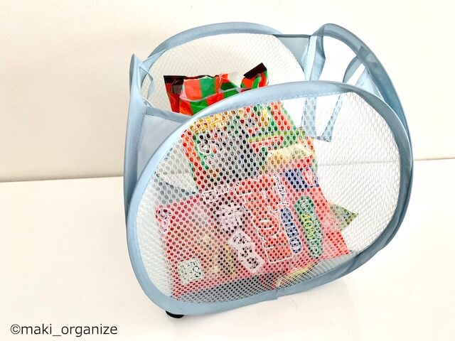 サイゾーウーマン暮らし住まいワッツ「メッシュバスケット」は名品 暮らし 伊藤まきの「お片付けSOS」相談! 収納のプロが絶賛愛用中! ワッツ110円「メッシュバスケット」は名品です! 2022/08/01 19:00 伊藤まき(収納ライター) 「お片付け・お掃除SOS」伊藤まき ワッツ「メッシュバスケット S」レジ袋収納やタオルの収納にも! 【ワッツ「メッシュバスケット S」使用例.4】おむつ入れ たくさん入るのに、超軽い!(C)maki_organize 幼児用おむつが、1袋ぜんぶ入るサイズ。形状が崩れやすい消耗品も、ワッツ「メッシュバスケット S」ならまとまります。ほか、サニタリーやティッシュなど紙類の整理もスッキリ! 【ワッツ「メッシュバスケット S」使用例.5】レジ袋入れ かもいフックに取っ手を引っ掛けて(C)maki_organize レジ袋を折って小さくする暇なんてない! という方は、バスケットゴールのように、投げ入れるだけが楽ちん。前回紹介した「かもいフック」に掛けると場所をとりません。 【ワッツ「メッシュバスケット S」使用例.6】お菓子入れ インスタント麺など増減の変化が多いものに(C)maki_organize お菓子、パン、シリアルなどの「ストック量の増減が変わる食品」入れにも◎。硬質のケースだと、在庫がゼロの時も場所をとるだけ。これなら、パッと出してサッと移動できます。 【ワッツ「メッシュバスケット S」使用例.7】帽子入れ 写真は、帽子が5個入っています(C)maki_organize 型崩れが気になる、つば付き帽子の収納に最適。中身も見えるし、数もたくさん入ります。洋服を引き出しにしまうのが面倒な方も、丸見えなら出し入れも簡単! 靴下、下着、Tシャツ、ハンカチなどもポイポイ投げるだけで済みます。 【ワッツ「メッシュバスケット S」使用例.8】タオル収納 タオル収納にもピッタリ(C)maki_organize タオル収納など「棚の中で自立できないモノ」を支えるスタンドに。ファイルボックスやブックスタンドより軽いので、収納の移動・見直しも簡単です。なにより、IKEA(イケア)「SKUBB(スクッブ)ボックス」に近いサイズ感がうれしいところ。軽めのモノなら、SKUBBボックスと同じように使えます。 【ワッツ「メッシュバスケット S」使用例.9】洗濯物の回収に! 回収時に仕分けして、あとは個人におまかせ!(C)maki_organize ワッツ「メッシュバスケット S」は、3色展開なので「洗濯物の仕分け」に便利。素材別、家族別、運ぶ場所別など自由な使い方ができます。家族が多い家なら、洗濯物を部屋に戻す作業を各自にお任せできます。 次のページ 【ワッツ「メッシュバスケット M」】の魅力 前のページ1234次のページ 楽天 床にものを置かない! 片付けの極意 関連記事 収納のプロが買わない100均「靴収納グッズ」! 片付かない家によくあるNGアイテムは?SNSで大人気ダイソー「メッシュバッグ」を浴室収納に! プロが解説、お風呂場スッキリ片付け実例【100均ずぼらシュラン】ダイソー「旅行に使える! 3WAYメッシュバッグ」そのまま洗濯できてズボラ女子に優しすぎる……ダイソー&セリアのコレが正解! 収納のプロが指名買い「ホッピングバッグ」5つの魅力元美容師が“買わない”ヘアアイテム5選! 「絶対に使わない」と言い切るシャンプーも!?