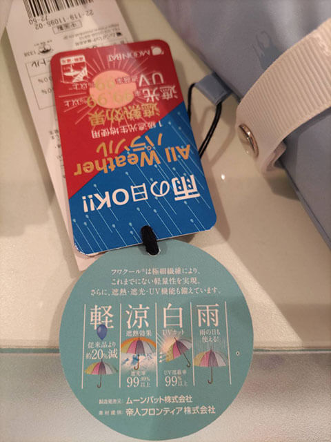 サイゾーウーマンカルチャーインタビューセールに間に合う! 日傘選びのコツ カルチャー [インタビュー] セールにも間に合う! 「日傘」遮光性で選ぶコツとNG使用法を小田急百貨店“アンブレラマスター”に聞く 2022/08/09 20:05 サイゾーウーマン編集部 インタビュートレンド 日傘選びの際に注目すべき3つのポイント ――日傘を選ぶ際に注目すべきポイントはありますか? 河地 日傘には「遮光」「遮蔽(しゃへい)」「遮熱」の3つの効果があります。 まず、遮光は“可視光線をカットする程度“を表し、“日よけ”になります。晴雨兼用傘に関しては、「1級遮光」とそうでないものの2種類に分かれ、1級遮光は、遮光率が99.99%あり、限りなく100%に近いんです。傘の内側が黒く塗りつぶされているようなイメージのお品物で、光を一切通さないため、木陰にいるような涼しさを感じられるようになっています。 対して1級遮光でないお品物は、遮光率が99%以上と1級遮光に比べるとやや数字が落ちてしまうため、特に今年は暑い日が続いていますから、熱中症対策の面でも、1級遮光の傘のご使用をおすすめしています。 次に、遮蔽は“UVカット率”を表し、“日焼け”対策をしたい方に注目いただきたい項目です。99%以上ある商品がほとんどで、遮光率同様に、商品タグにパーセンテージが記載されているので、チェックしてみてください。 最後の遮熱は、遮光と似た意味合いで、“熱をカットする効果”の有無を表しており、現在は、東レから出ている「サマーシールド」と、帝人フロンティアとムーンバットが共同開発した「フワクール」というシリーズで「遮熱」をうたっています。1級遮光で遮蔽率も99%以上と高く、「サマーシールド」「フワクール」ともに特殊多層ラミネート構造のため、遮熱効果を発揮しているのが特徴です。 これら3つの機能があることを頭に入れておくといいでしょう。 遮光 可視光線をカットする程度のことで、日よけ効果がある 一級遮光 遮光率が99.99%で、光を一切通さず涼しい 一級遮光以外 遮光率が99%以上で、一級遮光よりも効果が劣る 遮蔽 UVカット率のことで、日焼け防止に。99%以上の商品がほとんど 遮熱 “熱をカットする効果”の有無を表す。 東レ「サマーシールド」、帝人フロンティア×ムーンバック「フワクール」が該当 東レ「サマーシールド」の日傘(C)サイゾーウーマン 帝人フロンティアとムーンバック共同開発の「フワクール」製品はこのタグが目印(C)サイゾーウーマン 次のページ おすすめの日傘はコレ! 折りたたみ・ブランド・遮光 前のページ1234次のページ 楽天 SUN DEFENCE 100%遮光 超軽量カーボン日傘BOOK 関連記事 「日焼け止め」2022年最新ランキング! プロがおすすめ&ガッカリした商品をレビュー元美容師が“買わない”ヘアアイテム5選! 「絶対に使わない」と言い切るシャンプーも!?【東京ドーム、横アリほか】会場別の「安くて使いやすい」おすすめ防振双眼鏡を、ヨドバシカメラ販売員が解説!ライブ参戦前に必読! ジャニーズファンにヨドバシカメラ販売員が教える「最強の双眼鏡」!売れ筋おすすめ商品は「8~10倍」シェア買いアプリ「カウシェ」メリット&デメリットは? 失敗しない使い方