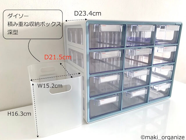 サイゾーウーマン暮らし住まい韓国ブランドの収納名品 暮らし 伊藤まきの「お片付けSOS」相談! 韓国ブランド「LITEM.(リテム)」のインテリア名品! 無印良品やニトリ他よりおすすめのワケ 2022/08/08 19:30 伊藤まき(収納ライター) 「お片付け・お掃除SOS」伊藤まき 「LITEM.SYSMAX(リテムシスマックス)」比較.4:アイリスオーヤマとニトリの場合 アイリスオーヤマ 工具箱 パーツキャビネット PC-30 上の写真は、アイリスオーヤマ「パーツキャビネット」で、工具のネジなどを収納するパーツケースです。ニトリ「レターケース9個引き出し」も同類にありますが、筆者が使って比較した結果「リテムシスマックス」のほうが頑丈。引き出しの滑りが良く、出し入れしやすいと感じました。 ・リテムシスマックス「小物収納キャビネット」2,198円(税込) サイズ:W41.2×D23.4×H32.5cm ・アイリスオーヤマ「パーツキャビネット」1,480円(税込) サイズ:W29.5×D13×H20cm ・ニトリ「レターケース9個引き出し」2,085円(税込) サイズ W37.5×D28.2×H17.5cm(商品コード:8732194) ほか商品と比べても、収納力とコスパの違いに差が出ます。では次に、どの場所でどんなふうに使うのか? についてまとめます。 「LITEM.SYSMAX(リテムシスマックス)」置き場所.1:テーブルや棚の上 ニトリ「レターケース9個引き出し」はカラボ内に入ります(C)maki_organize 残念ながら「リテムシスマックス」はカラーボックスの中に入りません。小物収納で使う場合は、造り付けのクローゼット棚の中、食卓テーブルやデスクの上、下駄箱や棚の上に使います。 「LITEM.SYSMAX(リテムシスマックス)」置き場所.2:本棚やオープンラックの中 ダイソー(商品番号:4984355715924)(C)maki_organize ダイソーの「積み重ね収納ボックス」が入る奥行きの棚にもおすすめです。目安としては、DVDや文庫本が入る本棚です。マンションのミニ戸棚も、この奥行きが多いですね。オープンラック棚で、小物がゴチャゴチャの家こそ「小物キャビネット」の出番です。 「LITEM.SYSMAX(リテムシスマックス)」置き場所.3:玄関周り 紙製ラベル付きで、書き換えも簡単(C)maki_organize 玄関まわりが広く、家族が多い家には玄関周りに置くのもおすすめです。下駄箱の近くに、ティッシュ、ハンカチ、マスクを用意すれば忘れ物を取りに行く手間が省けます。 また、家族の数だけ、家の鍵・自転車の鍵・車の鍵であふれるもの。ペンや印鑑、ペットのお世話用品、日焼け止め、防虫グッズなども必要だったりします。それをまとめて収納できるのがLITEM.SYSMAX(リテムシスマックス)です。 [まとめ]小物の量を維持するなら、収納用品が必須 「小物キャビネット」は積み重ねもOK(C)maki_organize 散らかりに悩む家ほど「モノが増えるから」と収納用品を否定する傾向があります。モノの量をすごく減らすなら、それが正解ですが「小物の量を維持したい」場合は、収納用品が必須です。 毎日使う小物は「在庫が見える」ほど、良い結果をもたらしてくれます。二度買いはもちろん、探し物、親の負担、散らかり防止などです。小物を大きな箱に、ざっくりと入れている家は「小物キャビネット」も検討してみてください。 LITEM.SYSMAX(リテムシスマックス)は、コストコのほかamazonと楽天にも取り扱いがあります。 【LITEM.日本公式店】UPシステムマルチボックス Sサイズ20段 (ミント) 収納ケース とはいえ、ネット購入はお値段が高めなのでコストコ会員の友人に相談するのがベストです。どうしても買いにくい場合は、ニトリ「レターケース9個引き出し」もおすすめ。家族みんなが迷わず「ワンアクションで出し入れ」できる設備投資を「小物キャビネット」で作ってみましょう。 ★こちらもおすすめ:リテムシスマックス「PORTA(ポルタ)コンパクト」 【ニトリ】ツールボックス、「コストコ」で人気のアレそっくり! 600円以下の最強コスパ整理収納アドバイザーの伊藤まきが、片付けに訪問した現場で「よくやる作業」「よく伝えるおすすめ収納法」を紹介していきます! プロの技シリーズ16回目は、一緒に使う小物をま...サイゾーウーマン2022.06.20 前のページ123 伊藤まき(収納ライター) 収納ライター・兼・整理収納アドバイザー1級。クリンネスト2級。おがくず工場に生まれ、ホテル清掃員、国鉄系レストランの厨房、内装会社、デパートの搬入搬出など“家事の土台”を極めた生活を経て、出版社入社ののち独立、現在に至る。モノを手放すほど「幸運」が舞い込むジンクスを何度も体感! 貧乏神と決別した実体験をもって、整理収納の威力をお伝えします。 記事一覧 Instagram:@maki_organize 最終更新:2022/08/10 11:56 セブンネット 収納が、ない! コストコ……(遠い目) 関連記事 片付けの「プロが買わない」100均の収納ボックス10選! ダイソーの○○は優秀片付けの“プロが買わない”、100均の収納グッズ10選! おすすめアイテムはコレダイソー「本当に使える」アイテム27選! 収納のプロが厳選、おすすめ片付けアイデアまとめ【2022年5月最新版】セリア・ワッツの名品「穴あきバス
