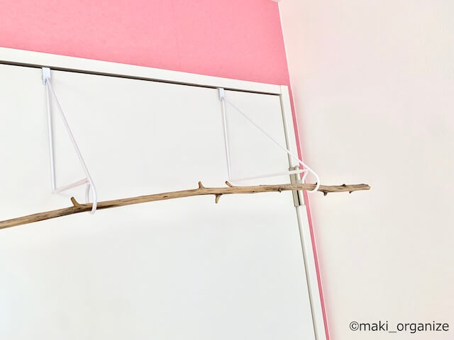 サイゾーウーマン暮らし住まいドアの壁を収納スペースに! 暮らし 伊藤まきの「お片付けSOS」相談! 収納力アップの「ドア裏」活用テクニック! 550円からできるプロおすすめの便利グッズ3選 2022/09/12 19:30 伊藤まき(収納ライター) 「お片付け・お掃除SOS」伊藤まき 整理収納アドバイザーの伊藤まきが、片付けに訪問した現場で「よくやる作業」「よく伝えるおすすめ収納法」やおすすめアイテムを紹介していきます! プロの技シリーズ27回目は、「ドアの裏」を使う収納法です。収納が少なくて家が狭いとお悩みなら、ドアを利用した壁収納が便利。 壁に穴を開けたくない! 大きな家具や箱を増やしたくない! 簡単に設置したい! というニーズも全て満たすアイテムを3種まとめて紹介します。 THREEPPY「ドアフックハンガー2個セット」550円(税込) 洗濯ハンガーがドアにぶつからない(C)maki_organize 写真上のように、部屋のドアを使えば「予算をかけたくない」「壁に穴を開けたくない」といった問題も心配無用。しかも、洗濯物干しだけじゃない使い方ができるのも魅力です。 L字の下部分に滑り止めのゴム付き(C)maki_organize 部屋のドアに使えるのは、ダイソーの300円ショップ「THREEPPY(スリーピー)」で購入できる「ドアフックハンガー 2個セット」¥550(税込)です。 同じ商品が、3COINS(スリーコインズ)にもあります。ともに、店頭在庫に限りがあるように思うのでご注意を。 [使用例.1]簡単パイプハンガーに! 上着の部屋干し、洋服の一時置き場にも重宝!(C)maki_organize 厚み3〜3.5cmの部屋ドアに、THREEPPY「ドアフックハンガー2個セット」を設置して、100均の突っ張り棒を通すだけでパイプハンガーに! 洗濯ハンガーはもちろん、タオルも乾かすことができます。部屋干しで場所が足りない時も、簡単着脱で増やすことができます。 [使用例.2]1本でも衣類掛けに! ドアを保護する、フェルトシールを貼っています(C)maki_organize 1個ずつ単品で使う手もあり! 約300円以下でほかのドアフックよりたくさん衣類を掛けることができます。これもまた、1個で使うと不安定なので保護パッドが必要です。 [使用例.3]木材を使えば、オシャレなインテリアバーに! 写真上は、流木を使ったイメージです(C)maki_organize ちょっとこだわって「木材の丸棒(直径2.5cm以内)」を使うのもおすすめ。季節のオーナメントや、エアプランツ、モビールなどを飾って楽しむことができます。ちょっと雰囲気があれば、出しっぱなしでも気になりません。ただし、開ける方向は危ないので滅多に使わないドアで様子を見ながら確認ください。 壁収納に便利なTHREEPPY「ドアフックハンガー2個セット」ですが、そのまま使うのは注意。建具を傷めないために、次のアイテムを用意しましょう。 [ポイント]フックの内側に、保護パットを用意しましょう ぐらつきの調整にも役立つ(C)maki_organize THREEPPY「ドアフックハンガー2個セット」は、鉄製なのでそのままドアに使うと傷つけてしまいます。100均で買える「クッションシール」と「フェルト製の保護パッド」をドアに触れる面に付けます。 [ポイント]壁にぶつかる部分の保護も忘れずに! 壁紙のスリ傷が付かないように!(C)maki_organize ドア開閉時に突っ張り棒が壁にぶつかるので、壁紙と触れる部分の保護が必要です。さらに、壁紙に「保護パッド」を直接貼ると壁紙が剥がれる恐れがあるので「マスキングテープ」を下地に付けると安心。 次のページ KESITIS「ドア掛けポケットオーガナイザー」1,999円 123次のページ 楽天 もう散らからない!ラクに片付く収納the Best 関連記事 【ニトリ】1,152円のホワイトボードがおすすめ! ダイソーと合わせ技の「壁収納」でリビングがスッキリプロが選ぶ100均「かもいフック」、イチオシはコレ! 10通りの使用法で収納力アップ食器棚で「やってはいけないNG収納」5連発! 使いにくくて、散らかりやすい……プロが片付けした結果、こうなったやってはいけない収納テク!? 靴ギュウギュウの下駄箱に○○はNG、「スッキリ片付く」6ステップキャンドゥ「レザー調トレー」が正解! カラボ「引出し収納ケース」、無印良品と100均のアレはNG!