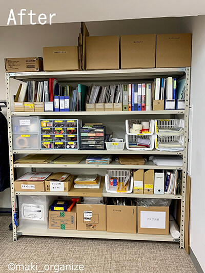 サイゾーウーマン暮らし住まい片付け専門家が写真で解説「ゴチャゴチャなオープンラック」整理術10選 暮らし [連載]女たちの「煩悩部屋」ビフォーアフター 片付け専門家が写真で解説「ゴチャゴチャなオープンラック」整理術10選 2023/03/28 17:00 伊藤まき(収納ライター) 「汚部屋」ビフォーアフター 【ポイント6】積み重ねができる「前開き箱」が便利 スタッキングできる分別箱が便利(C)maki_organize 写真は100均「ワッツ」の「のせのせストッカー」です。よく使う小物なら、種類別に分けて前開きの収納箱にまとめるとスッキリ。 660円で洗面台下のスッキリ収納を実現! 100均ワッツでしか買えない優れモノ、おすすめテクニック整理収納アドバイザーの伊藤まきが、片付けに訪問した現場で「よくやる作業」「よく伝えるおすすめ収納法」やおすすめアイテムを紹介していきます! プロの技シリーズ31回目は、...サイゾーウーマン2022.10.11 もっと細かくスリムに収納したい場合は、無印良品「ポリプロピレン収納ラック」や天馬「PRX ルームラック」がおすすめ。ほかにも、TB型ボックス、T型コンテナ、パーツボックス、ラックコンテナと呼ばれる「積み重ね箱」などもあります。 【ポイント7】取り出すことを考えて「見える平置き」にセット ビニール袋から出しておくこと(C)maki_organize オフィスで一番使うのは封筒類。消耗品の多くは、手前や上から取っていくので、在庫の数をひと目で確認できる仕組みが正解です。封筒に限らず、消耗品は「見える平置き」収納にすると散らかりません。 【ポイント8】「枠」や「色」を使えば、場所が決まる 段ボール板を「枠」に見立てるも良し(C)maki_organize 種類が多い消耗品は、取り出し時に迷いがち。目的のモノを1発で出すなら、「枠」で区別するのが親切。また、カラフルなペン、テープ、リボンなどや「色」で分けるのもおすすめ。家庭でも「取り出しやすさ」を考えることで、散らかりにくくなります。 【ポイント9】厚紙の「見出し」で種類分け! 見出しがないと散らかります(C)maki_organize 同じA4サイズで使用目的の異なるモノを置く場合、「見出し」があると迷いません。段ボールの厚紙などを利用すると◎。多数の人が出し入れするので、すぐわかるように工夫します。家庭なら、食材、薬、趣味の整理などに見出しがあると、ゴチャつきにくくなります。 【ポイント10】最下段は同サイズの収納箱が便利 ラベルがない場合はプリント印刷で!(C)maki_organize 基本的に、最下段は「重たいモノ」を入れます。入れる箱は同じサイズで揃えると便利。家庭なら、キャスター付きのコンテナボックスなどが◎です。 オープンラックのビフォー・アフター写真 モノをどかして出すから散らかる(C)maki_organize モノを1回で出せれば散らかりにくい(C)maki_organize 片付け専門家が教える「重要書類」分類術! 100均&イケアのアイテムで生前整理も解決中古マンション再生! 連載企画「汚部屋 ビフォーアフター」は、筆者の「新しい実家」です。ゴミ屋敷だった実家じまいをへて中古マンションへと住み替え、築30年分の汚れを自力で清...サイゾーウーマン2023.03.22 前のページ123 伊藤まき(収納ライター) 収納ライター・兼・整理収納アドバイザー1級。クリンネスト2級。おがくず工場に生まれ、ホテル清掃員、国鉄系レストランの厨房、内装会社、デパートの搬入搬出など“家事の土台”を極めた生活を経て、出版社入社ののち独立、現在に至る。モノを手放すほど「幸運」が舞い込むジンクスを何度も体感! 貧乏神と決別した実体験をもって、整理収納の威力をお伝えします。 記事一覧 Instagram:@maki_organize 最終更新:2023/03/28 17:30 キレイにしてくれて感謝しかないです 関連記事 片付け専門家が教える「重要書類」分類術! 100均&イケアのアイテムで生前整理も解決片付け専門家が教える「食器棚」活用アイデア6選! 本棚や文房具収納に使うのが◎片付け専門家がゴミ屋敷を大改造! “散らかりにくい部屋”を作る5つの仕組みとは?片付け専門家が教える洗濯機まわり収納術! 「約5,000円」で可動棚をDIY片付け専門家が「古い棚」を簡単DIY! セリアのリメイクシートで傷や汚れを隠す方法 次の記事 キンプリ・高橋、無表情ダンスが物議 >