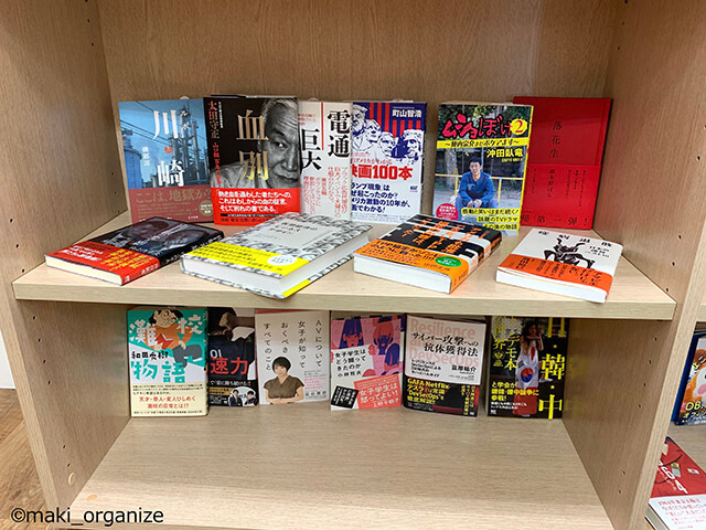 サイゾーウーマン暮らし住まい本棚を「ディスプレイラック」に変える方法! 暮らし [連載]女たちの「煩悩部屋」ビフォーアフター 片付けの専門家が教える「おしゃれな本棚」の作り方! ダイソーグッズで見せる収納に 2023/04/04 17:00 伊藤まき(収納ライター) 「汚部屋」ビフォーアフター ダイソー「アイアンウォールバー」の使い方 商品番号:4991203188991(C)maki_organize ダイソーの「インテリアアイアンウォールバー(30cm)」100円(税抜)です。壁にアートフレームを飾るための鉄の凹型バーで、鉄製なのにフックより大きくコスパ満点。 30cmのほか、10cmと20cmあり(C)maki_organize まず、本棚の棚板にマスキングテープを貼ります。次に、アイアンバーの裏にダイソー「剥がせる両面粘着ゲルテープ」を貼れば、棚板を傷めずに済みます。この方法で「棚受け」も作れます。どちらも「軽いモノ置き」限定のアレンジです。 ダボとアイアンバーで「斜めの棚」に 「ダボ」とダイソーの「アイアンバー」を使って、次のような本棚になりました。 【Before】余白が多くてもったいない(C)maki_organize 【After】棚を斜めにして、ディプレイラックに(C)maki_organize 既存の棚をなるべく使いたいという要望から、ダボの位置を1段下にずらして「斜めの棚」に変えてみました。アイアンバーをストッパーにしましたが、DIYができれば角材でもOK。予算があれば、ネイル用ウォールラックも使えます。 次に、本棚には欠かせない「ブックエンド」のアレンジ法も紹介します。 次のページ ダイソー「ブックエンド」の使い方 前のページ123次のページ 関連記事 片付け専門家が写真で解説「ゴチャゴチャなオープンラック」整理術10選片付け専門家が教える「重要書類」分類術! 100均&イケアのアイテムで生前整理も解決片付け専門家が教える「食器棚」活用アイデア6選! 本棚や文房具収納に使うのが◎片付け専門家がゴミ屋敷を大改造! “散らかりにくい部屋”を作る5つの仕組みとは?片付け専門家が教える洗濯機まわり収納術! 「約5,000円」で可動棚をDIY
