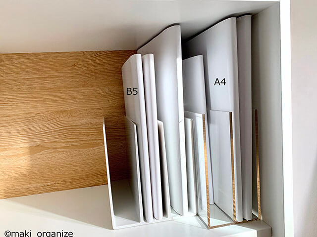 サイゾーウーマン暮らし住まい教科書収納ポイント10選! 暮らし 伊藤まきの「お片付けSOS」相談! 教科書収納は無印とセリアが正解! 片付けプロが教える「出しやすい」アイデア10選 2023/04/25 17:44 伊藤まき(収納ライター) 「お片付け・お掃除SOS」伊藤まき 【教科書収納ポイント4】ブックスタンドの素材は硬質なほど◎ 厚みがあると、本の高さも増えるので注意(C)maki_organize どちらもプラスチック製のブックスタンド。100均にも類似品がありますが、薄く割れやすいので選びません。紫外線が強く当たる部屋だと、経年劣化で壊れるので「硬さ(強度)」が重要です。頑丈なのは、スチール製>木製>アクリル>プラスチックだと思います。 【教科書収納ポイント5】ギュウギュウより「ゆとり」で取り出しやすく! 無印良品には木製タイプもあります(C)maki_organize おすすめの無印良品のブックスタンドに、A4とB5の教科書を陳列。幅に「ゆとり」があるほうが、快適な出し入れが可能です。保管するだけならギュウギュウに押さえる「ブックエンド(本立て)」が適していますが、出し入れを前提とするなら「ブックスタンド(写真の商品)」が良いです。 【教科書収納ポイント6】100均で選ぶなら、セリア「A4ファイルスタンド」 新学期が始まると入手困難に!?(C)maki_organize 100均で選ぶなら、セリア「A4ファイルスタンド」がおすすめです。とはいえ、今シーズン(4月上旬)は4店舗も巡りましたがどこも完売! 教科書収納として便利という口コミが広がっているよう。横幅が7.3cmと狭いので「ブックスタンド」のような出し入れが叶う商品です。 【教科書収納ポイント7】100均の「前開き型ファイルスタンド」でもOK 前開き型ファイルスタンドも使える!(C)maki_organize 100均の横幅が広い「前開き型ファイルスタンド」でも大丈夫。本棚の横幅に合わせた個数を用意すれば、使いやすくなります。ただし100均の商品はすべて、プラスチック板が薄くて軽いので「支え合って強度を増す」ように使うように。 【教科書収納ポイント8】100均のスタンドは「横倒れ」に注意 埃が吸着しやすい欠点もあります(C)maki_organize 100均のファイルスタンドを使う場合は、教科書の重さで横倒れしないよう「本棚の横幅に合わせた個数」が必要です。隙間や歪みも出やすいので、強力な両面テープで強度を増してもOK。この点だけ注意すれば、100均の軽いファイルスタンドでも大丈夫。 次のページ 【教科書収納ポイント9】100均のスタンドは「ラベルの直貼り」が便利 前のページ123次のページ 関連記事 「ランドセル収納」はIKEAワゴンが最強! 片付けのプロが教える失敗しない使い方とは?片付け専門家が教える「衣替え」のコツ7つ! ダイソーやSHEINアイテムで冬物収納疲れない大掃除テク! オキシクリーンでトースターの真っ黒な焦げ、洗濯槽や浴室のカビもスッキリダイソー「本当に使える」収納アイデア31選! プロがおすすめ最新アイテムまとめ【2022年11月最新版】ダイソー「ワイヤーバスケット」活用アイデア6選! たった800円でデッドスペースやランドリー用品がスッキリ