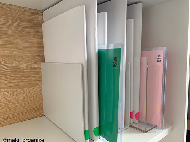 サイゾーウーマン暮らし住まい教科書収納ポイント10選! 暮らし 伊藤まきの「お片付けSOS」相談! 教科書収納は無印とセリアが正解! 片付けプロが教える「出しやすい」アイデア10選 2023/04/25 17:44 伊藤まき(収納ライター) 「お片付け・お掃除SOS」伊藤まき 【教科書収納ポイント9】100均のスタンドは「ラベルの直貼り」が便利 プラスチックはシールを貼りやすい(C)maki_organize 白のプラスチック製なので、ラベルが直貼りできる点も便利。戻す場所がしっかりわかれば、散らかりも減ります。 横倒れしないように連結を(C)maki_organize 【教科書収納ポイント10】ラベルは「色分け見出し」で完璧に! 図書館のような見出しに、色分けすると◎(C)maki_organize 教科書に限らず、本の管理は「見出し」で決まります。わかりやすい見出しがあれば、元の場所へ戻す流れが自然に作られますよ。 「カラーシール」でわかりやすく色分け 文字より「色ラベル」のほうが目立つ(C)maki_organize 文字より「色分け」のほうが、圧倒的にわかりやすい。子どもの教科書なら、国語、理科、といった教科のイメージカラーを自分で選ばせるとより◎。この一手間で、素早く迷わず教科書を手に取ることができます。 B5サイズのハードタイプカードケース(C)maki_organize 教材の数が増えてきたら「色分け見出し」が便利。見出しは、A4サイズの本に対して「B5サイズのハードタイプカードケース」が適しています。長い学生生活でも繰り返し使えますよ。 【まとめ】長い学生生活を支える「教科書収納」 スタンドの厚みで、A4判(H29.7cm)の高さが変わる(C)maki_organize ギュウギュウに詰めるより、ある程度「ゆとりのある空間」で「前開きのファイルスタンド」が、取り出しやすい収納のポイント。前回の「ランドセル置き場(バッグ置き場)」とともに、春の新生活をブラッシュアップしていきましょう! 非公開: 「ランドセル収納」はIKEAワゴンが最強! 片付けのプロが教える失敗しない使い方とは?整理収納アドバイザーの伊藤まきが、片付けに訪問した現場で「よくやる作業」「よく伝えるおすすめ収納法」やおすすめアイテムを紹介していきます! 新生活が始まる春になると「ラ...サイゾーウーマン2023.04.18 前のページ123 伊藤まき(収納ライター) 収納ライター・兼・整理収納アドバイザー1級。クリンネスト2級。おがくず工場に生まれ、ホテル清掃員、国鉄系レストランの厨房、内装会社、デパートの搬入搬出など“家事の土台”を極めた生活を経て、出版社入社ののち独立、現在に至る。モノを手放すほど「幸運」が舞い込むジンクスを何度も体感! 貧乏神と決別した実体験をもって、整理収納の威力をお伝えします。 記事一覧 Instagram:@maki_organize 最終更新:2023/04/25 17:44 教科書は出しやすさを重視! 関連記事 「ランドセル収納」はIKEAワゴンが最強! 片付けのプロが教える失敗しない使い方とは?片付け専門家が教える「衣替え」のコツ7つ! ダイソーやSHEINアイテムで冬物収納疲れない大掃除テク! オキシクリーンでトースターの真っ黒な焦げ、洗濯槽や浴室のカビもスッキリダイソー「本当に使える」収納アイデア31選! プロがおすすめ最新アイテムまとめ【2022年11月最新版】ダイソー「ワイヤーバスケット」活用アイデア6選! たった800円でデッドスペースやランドリー用品がスッキリ 次の記事 TOKIO松岡、ラジオで“○○愛”熱弁 >
