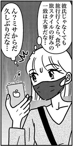 サイゾーウーマンカルチャーマンガアラフォー婚活、友人が羨ましい カルチャー まんが『オバサンと言われても結婚したい!』271話 【アラフォー婚活ルポ】あのマッチングアプリでイケメン彼氏をゲット……友人が羨ましい 2023/09/13 13:30 白戸ミフル(マンガ家) オバサンと言われても結婚したい! ――合コン歴20年以上、累計回数2,500回以上、30代なかばに乳がんで闘病するも、現在は絶賛婚活中のライター・漫画家の白戸ミフルが「アラフォー婚活」の実体験をほぼリアルタイムでお届けします! アラフォー中の結婚は成就するのか……!? 【前回まで】 20代男子にセフレにされかけた痛い経験をバネにして「婚活の鬼」になった私。マッチングアプリを中心に行動中! 出会ってすぐの男性とベトナム旅行をするも、ラブはなく終了する。そんな中、友達からはある報告が……。 271話『あのマッチングアプリでイケメン彼氏をゲット……友人が羨ましい』 次のページ 羨ましいぜ…… 123次のページ Yahoo 乳がんステージ4だった私が、それでも合コンに行きまくって救われた話 コミックエッセイ/白戸ミフル(著者) 関連記事 【アラフォー婚活ルポ】アプリで出会った彼氏とスピード破局! イケメンだったのに惜しいことした?【アラフォー婚活ルポ】アプリ婚活を再開! コミュニティで共通の話題のある人を探す!【アラフォー婚活ルポ】なんつーイケメン!!! 銀座に降臨した美しき婚活男性【アラフォー婚活ルポ】39歳でフラれた私は「鬼」になった! 恋愛してやる!! 【アラフォー婚活ルポ】結婚相談所の紹介は○○……アラフォー3人、2021年の婚活を振り返る! その他の作品を読む