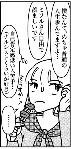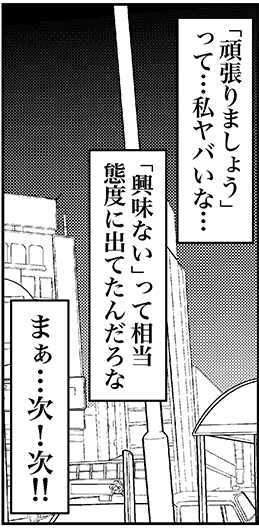 サイゾーウーマンカルチャーマンガアラフォー婚活、態度に出てた? カルチャー まんが『オバサンと言われても結婚したい!』273話 【アラフォー婚活ルポ】「お互いがんばりましょう」って……相当態度に出てた? 2023/09/20 13:30 白戸ミフル(マンガ家) オバサンと言われても結婚したい! ――合コン歴20年以上、累計回数2,500回以上、30代なかばに乳がんで闘病するも、現在は絶賛婚活中のライター・漫画家の白戸ミフルが「アラフォー婚活」の実体験をほぼリアルタイムでお届けします! アラフォー中の結婚は成就するのか……!? 【前回まで】 20代男子にセフレにされかけた痛い経験をバネにして「婚活の鬼」になった私。マッチングアプリを中心に行動中! 友人が「バチェラーデート」で彼氏をゲットしたため、さっそく入会したものの、期待外れの男性にしか会えず……。 273話『「お互いがんばりましょう」って……相当態度に出てた?』 次のページ 婚活に専念と決めたものの…… 123次のページ Yahoo 乳がんステージ4だった私が、それでも合コンに行きまくって救われた話 コミックエッセイ/白戸ミフル(著者) 関連記事 【アラフォー婚活ルポ】アプリで出会った彼氏とスピード破局! イケメンだったのに惜しいことした?【アラフォー婚活ルポ】アプリ婚活を再開! コミュニティで共通の話題のある人を探す!【アラフォー婚活ルポ】なんつーイケメン!!! 銀座に降臨した美しき婚活男性【アラフォー婚活ルポ】39歳でフラれた私は「鬼」になった! 恋愛してやる!! 【アラフォー婚活ルポ】結婚相談所の紹介は○○……アラフォー3人、2021年の婚活を振り返る! その他の作品を読む