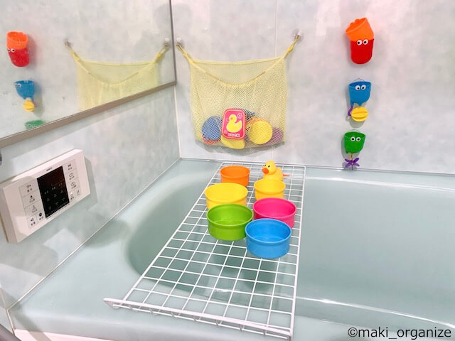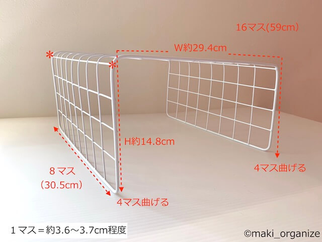 サイゾーウーマン暮らし住まいワイヤーネット、プロの徹底活用術20 暮らし 伊藤まきの「お片付けSOS」相談! ダイソー「ワイヤーネット」の便利な収納アイデア20! 片付けのプロが教える実例集 2023/10/09 15:00 伊藤まき(収納ライター) 「お片付け・お掃除SOS」伊藤まき ダイソーの一番大きなサイズ。220円(C)maki_organize 100均のダイソーやセリアなどで定番人気のアイテム、ワイヤーネット。収納アイテムとして壁に掛けて使うのは定番方法として知られていますが、ほかにも便利な使い方があるんです! 例えば、テレビ周りに設置すれば配線コードの整理に。クローゼットで使えば、ネクタイやスカーフがスッキリ収納できます。また、ワイヤーの特性を生かして折り曲げると、簡易な収納ラックが完成。 ほかにも、さまざまな使い方ができるワイヤーネットについて整理収納アドバイザーの伊藤まきさんが解説した記事をあらためて紹介します。 ※商品名や価格などは2022年3月21日時点の情報です。掲載商品については予告なく廃盤、仕様変更等が発生する場合がございます。予めご了承ください。 ********************** 整理収納アドバイザーの伊藤まきが、片付けに訪問した現場で「よくやる作業」「よく伝えるおすすめ収納法」を【プロの技】シリーズとして紹介していきます! ダイソーとセリア「ワイヤーネット」 6回目は「ワイヤーネット 実例編」です。片付け訪問で、実際に使用した例を中心に、20パターンの実例案を紹介します。前回のダイソーとセリアのサイズ一覧を確認することで、片付けのヒントになればうれしいです。 非公開: 100均「ワイヤーネット」サイズ一覧|収納のプロが教える活用アイデア実例整理収納アドバイザーの伊藤まきが、片付けに訪問した現場で「よくやる作業」「よく伝えるおすすめ収納法」を【プロの技】シリーズとして紹介していきます! 目次 ・ダイソーとセ...サイゾーウーマン2025.01.04 ワイヤーネット[使用例1]お風呂の「水切りネット」に ダイソーの220円のワイヤーネット(29.5×80)をバスタブトレーに(C)maki_organize ワイヤーネットをバスタブに渡せば、お風呂でおもちゃを乾かすバスタブトレーになります。ほかにも、ベランダでぬいぐるみを干したりと、マルチに使える「水切りネット」に。 300円前後で販売されている人気のゴム付き「たためる水切り」より、ぬめりやカビの心配が少ないと感じます。 ワイヤーネット[使用例2]ハンギングワイヤーバスケットの代わりに 窓枠があれば、鴨居フックで頑丈に(C)maki_organize プラスチックの食器を自然乾燥させるなら、「ハンギングワイヤーバスケット」が便利。筆者も拭きたくないので、この方法でラクをしています。でも、吊り戸棚がないキッチンだとバスケットを引っ掛けるところがありません。 そんなときは、熱圧着式フックと曲げた「ワイヤーネット」でハンギングワイヤーバスケットが作れます。ただし、落下すると割れる素材、シンクが傷付くモノは乗せないよう注意。 非公開: 100均「ワイヤーネット」サイズ一覧|収納のプロが教える活用アイデア実例整理収納アドバイザーの伊藤まきが、片付けに訪問した現場で「よくやる作業」「よく伝えるおすすめ収納法」を【プロの技】シリーズとして紹介していきます! 目次 ・ダイソーとセ...サイゾーウーマン2025.01.04 収納のプロが選んだ「100均グッズ」、ダイソー通称「スッポンフック」4つのスゴいポイント!整理収納アドバイザー1級で収納ライターの伊藤まきが、家の中の “片付かない”ちょっとした悩みを“簡単で安く”解決するコツを提案します! 整理収納アドバイザーが「散らか...サイゾーウーマン2020.07.06 ワイヤーネット[使用例3]軽めの小物を置く、簡単「コの字ラック」に ちょっと上の空間を使いたいという時に◎(C)maki_organize カラーボックスのような高さのある棚に、ちょっと置くだけ。左右対称に曲げた「ワイヤーネット」で「コの字ラック」が作れます。置き台の面がフラットではありませんが、軽めの小物を置く程度なら大丈夫。キッチンの戸棚なら、上にラップや下に水切りカゴなど軽いモノを上下に分けて収納できます。 [ポイント]左右対称の「マス数」に曲げるだけ 曲げるとき、*印から先に力を入れると簡単(C)maki_organize 作り方は簡単! 写真上の場合「ワイヤーネット(8×16マス)」を、左右対称に内側に曲げただけ。セリアとダイソーの「ワイヤーネット・全サイズ表」を見れば、いろいろなサイズで作ることができます。 ワイヤーネット[使用例4]狭い洗面所に! スリムな「タオルラック」に 左右に麻紐などを通せば、落下防止になります(C)maki_organize セリアの「ワイヤーネット(8×16マス)マットブラック」を、手前6マス、背面7マスに曲げただけで「タオルラック」になりました。マガジンラック、ボトルスタンドもこのカタチが◎です。 次のページ ワイヤーネット[使用例5]トイレ収納不足を解決、「トイレットペーパーラック」に 12345次のページ 楽天 100均ファンmagazi