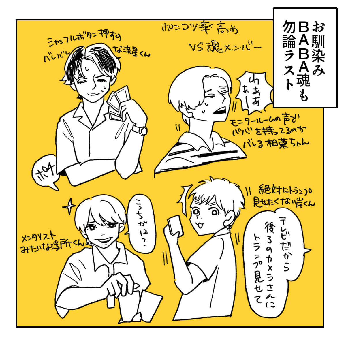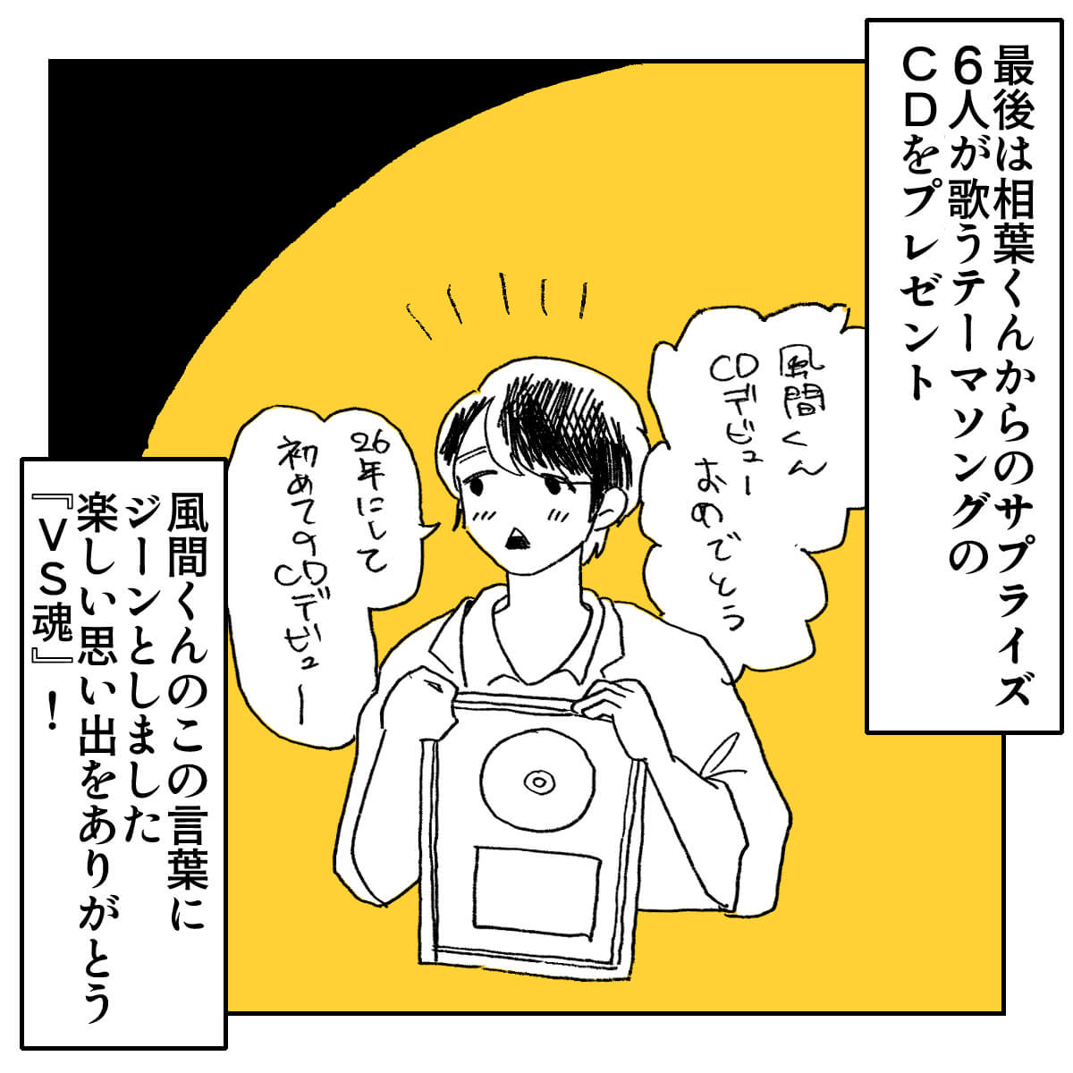 サイゾーウーマン男性アイドルSTARTO(旧ジャニーズ)元ジャニーズTOBENumber_i岸優太『VS魂』最終回名シーン 男性アイドル [ジャニオタ漫画家・竜田トキヒロの“推し事”見聞録]vol.26 【ジャニオタマンガ】相葉雅紀に容赦ない岸優太、風間俊介がCDデビュー! 『VS魂』最終回名シーン 2023/10/04 21:00 竜田トキヒロ(マンガ家) 相葉雅紀岸優太竜田トキヒロの“推し事”見聞録 岸優太、1000万円のケーキで白目に 嵐・相葉雅紀、『VS魂』最終回でメンバーにプレゼントしたモノ――「寂しくなった時に……」 嵐の相葉雅紀がキャプテンを務めるバラエティ番組『VS魂グラデーション』が9月28日に最終回を迎えた。この日は「みんなで思い出作ろう!SP」として、魂メンバーと番組...サイゾーウーマン2023.09.29 【ジャニオタマンガ】映画『Gメン』は“愛されキャラ”岸優太にピッタリ! 門松勝太にみんなメロメロ――Twitterで日々、ジャニーズタレントにまつわるイラストを投稿中のジャニオタ漫画家・竜田トキヒロが、現場レポートからドラマや映画、番組レビューまで、“推し事”の様子を...サイゾーウーマン2023.08.30 岸優太のような俳優は滅多にいないといえる理由――『Gメン』『すきすきワンワン!』等身大の青年を演じられる魅力 ――ドラマにはいつも時代と生きる“俳優”がいる。『キャラクタードラマの誕生』(河出書房新社)『テレビドラマクロニクル1990→2020』(PLANETS)などの著書...サイゾーウーマン2023.09.27 @cyzowoman ✍【ジャニオタマンガ】✍ 『VS魂』最終回名シーン ジャニオタ漫画家の“推し事”見聞録シリーズ、毎週水曜にサイゾーウーマンで更新中? #ジャニーズ #相葉雅紀 #嵐 #風間俊介 #岸優太 #佐藤勝利 #藤井流星 #浮所飛貴 ♬ オリジナル楽曲 ジャニーズ情報No.1メディア_サイゾーウーマン 前のページ12 竜田トキヒロ(マンガ家) 漫画家、イラストレーター。育休中に執筆したエッセイ漫画でKADOKAWAコミックエッセイ大賞受賞。Ameba、ライブドア公式ブロガーを経たのち現在はインフルエンサーとしてエンタメ、オタクに特化した漫画やイラストや体験ルポ等幅広く執筆。著書『コミュ障母さんとごきげん娘』(KADOKAWA) X:@musumenuma 最終更新:2023/10/05 15:33 後番組『木7◎×部』は10月26日スタートです! 関連記事 【ジャニオタマンガ】山田涼介の美貌とコントが交互に! 賛否両論の映画『大怪獣のあとしまつ』レビュー【ジャニオタマンガ】井上瑞稀、矢花黎、西村拓哉の演技が光った、ドラマ『なれの果ての僕ら』レビュー【ジャニオタマンガ】映画『禁じられた遊び』、ヒロインは橋本環奈ではなくジャニーズWEST・重岡大毅だった【ジャニオタマンガ】中村嶺亜は「不動の皇帝」矢花黎は「軍師」! 7 MEN 侍ステマシート【ジャニオタマンガ】映画『Gメン』は“愛されキャラ”岸優太にピッタリ! 門松勝太にみんなメロメロ 次の記事 ジャニーズ新体制めぐる所属タレントの意見が波紋 >