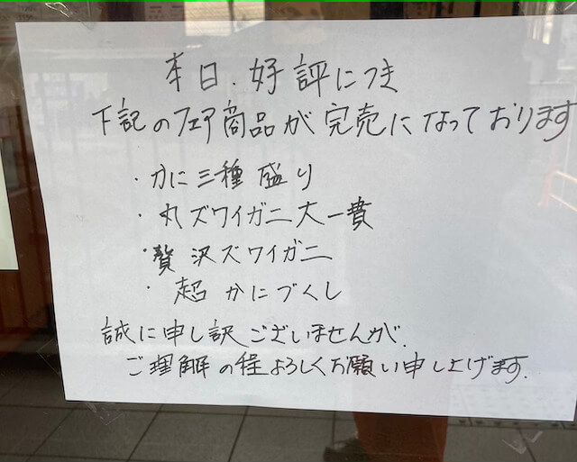 サイゾーウーマン暮らしトレンドくら寿司、期間限定345円「贅沢紅ズワイガニ」すごすぎ 暮らし 人気チェーン店、実食レビュー! くら寿司、345円「贅沢紅ズワイガニ」はコスパ最高!! 期間限定メニューを実食レビュー 2023/12/21 17:02 サイゾーウーマン編集部 回転寿司くら寿司 くら寿司外観(C)サイゾーウーマン 12月15日から始まったくら寿司の「極上かにフェア」。こちらは恒例のフェアのようで、ネット上では「蟹フェアのときはくら寿司に通う」「念願のかにフェア!」といった歓喜の声が見られます。 こうしちゃいられないと早速、くら寿司へ向かったところ、平日の昼時にもかかわらず大行列! 踵を返して2店目へ向かうと、今度は「売り切れ」の知らせが……。「極上かにフェア」、かなりの人気であることがうかがい知れます。 売り切れの知らせにがっかり(C)サイゾーウーマン 結局、翌日の開店30分後に再訪したところ、ようやくお目当てを食べることができました。それぞれ実食レビューしていきます! ※2023年12月19日公開の記事を再編集しています。 ※最新の情報は公式サイトや公式SNSをご確認ください。 ※店舗によって取り扱いメニューが異なります。 目次 ・くら寿司の期間限定メニュー ・くら寿司の期間限定メニュー「極上かにフェア」実食レビュー ・そのほかフェアメニュー くら寿司の期間限定メニュー【2023年12月15日スタート】 極上かにフェア 席の頭上、控えめにフェアの知らせ(C)サイゾーウーマン 【開催期間】12月15日(金)~12月24日(日) >>>フェア詳細はこちら くら寿司の期間限定メニュー「極上かにフェア」実食レビュー 左からかに三種盛り、かにマヨ、贅沢紅ズワイガニ(C)サイゾーウーマン 丸ズワイガニ大 280円 極めてシンプルな見た目(C)サイゾーウーマン 存在感すごい(C)サイゾーウーマン 身が厚く、シャリにドドーンと鎮座しているズワイガニ。大きくて食べごたえがあり、少し水っぽさはあるけど味もおいしい。カニを食べている実感があります。ただ、しょうゆをかけすぎてしまって少し反省。しょうゆなしで十分です。280円の価格は妥当なラインかと思います。 コスパ:★★★☆☆ 満足度:★★★☆☆ ※販売期間:12月15日(金)~12月24日(日) 贅沢紅ズワイガニ 345円 こんもりとカニの身が乗っている(C)サイゾーウーマン サイドから見ると圧巻(C)サイゾーウーマン 贅沢紅ズワイガニは、「紅ズワイガニの身をシャリからはみ出るほどふんだんに盛り付けた上に、さらに紅ズワイガニの棒肉を豪快に乗せた、見た目も華やかでカニの旨味を贅沢に楽しめる一品」(公式サイトより)とのこと。 その通り、シャリの上にこんもりと盛られたカニ! 圧巻のビジュアルです。食べてみると棒肉のほうはジューシーで、ほぐした身のほうは紅ズワイのうまみを感じます。なによりカニがたっぷり乗ってるから、口いっぱいに味わえて幸せ! これで345円はおすすめです。売り切れ納得! コスパ:★★★★★ 満足度:★★★★★ ※販売期間:12月15日(金)~12月24日(日) ※お持ち帰り不可 かに三種盛り 390円 ※本ズワイガニ棒肉・本ズワイガニ爪下・かに身 手前から本ズワイガニ棒肉・本ズワイガニ爪下・かに身(C)サイゾーウーマン フレークがシャリからこぼれ落ちる(C)サイゾーウーマン 「かに三種盛り」はフェアの目玉商品。「“カニの王様”とも呼ばれる本ズワイガニと鮮やかな紅色が特徴の紅ズワイガニを使用。水揚げ後すぐに茹でるなど特別な加工方法を施すことで、濃厚な旨みが堪能できる“本ズワイガニの棒肉”と、繊細な甘みが特徴の“爪下”、みずみずしい食感で色鮮やかなカニ身が食欲をそそる“紅ズワイガニのフレーク”の三種のお寿司を1皿で食べ比べできる贅沢な商品」(公式サイトより)とのこと。 爪下の身は、甘みと塩味がじゅわっと感じられておいしい! 思わず爪の部分に残った身ををチューチューするほど、名残惜しい味わいでした。さすが本ズワイガニ、と納得するうまみ! そのほか、棒肉やフレークもおいしくいただきました。390円はコスパ◎! コスパ:★★★★★ 満足度:★★★★☆ ※販売期間:12月15日(金)~12月24日(日) ※お持ち帰り不可 爪下のボリュームが気になりチェックしてみた(C)サイゾーウーマン ペラペラではなくちゃんと身がついていました(C)サイゾーウーマン かにマヨ 130円 ジャンクな見た目も安心感あり(C)サイゾーウーマン カニのフレークにマヨネーズを添えた軍艦巻き。マヨの味9割ですが、うまい。ジャンクな味と130円という値段が安心する存在。のりがパリパリでおいしい! コスパ:★★★★★ 満足度:★★★★☆ ポン酢は回転レーンに! 食後に気がついたポン酢(C)サイゾーウーマン 食後、目の前の回転レーンに乗ってポン酢が流れていることに気がつきました。ポン酢がほしい人はレーンをチェックしてください。 かにクリームコロッケ 180円 2つで提供されます(C)サイゾーウーマン クリームは固め(C)サイゾーウーマン かにフェアの数量限定「かにクリームコロッケ」。かにの身の