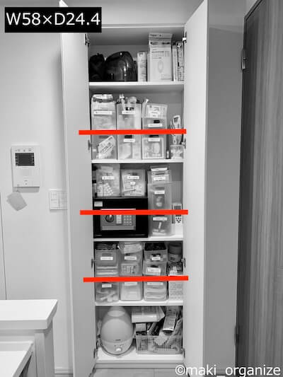 サイゾーウーマン暮らし住まい【ダイソー】150円「積み重ね収納ボックス」 暮らし [連載]女たちの「煩悩部屋」ビフォーアフター 【ダイソー】150円「積み重ね収納ボックス」でスッキリ! 使いにくい収納棚ビフォーアフター 2024/01/09 17:00 伊藤まき(収納ライター) 「汚部屋」ビフォーアフター 【収納棚】Before:棚板の数が少ない 洗剤と電球、薬などが「ごちゃ混ぜ」に入ってます ほとんどの家が、入居時のまま「棚板の間隔の高さ」に合わせて、モノを置きます。例えば、写真上のように大きめの箱に「ざっくり入れる」収納をすると、モノが増えやすい、散らかりやすい、在庫がわからない、見つけにくいなどの問題が生まれます。 収納棚の片付け手順.1:「ぜんぶ出してリセット」 何年も入れっぱなしなので、埃もいっぱい 「使いやすい収納」に変えるために、収納の中身をぜんぶ出す作業をします。入居時から棚板の位置を変えていなければ、「使いにくさ」を感じるはずです。奥行きの狭い棚は、「棚板の間隔」が使いやすさの鍵になります。 収納棚の片付け手順.2:入っていたモノの内容を、ぜんぶ見直す 期限切れやもらったモノなどは処分する対象にしやすい モノの量が少なく「スッキリした暮らし」を目指すKさんですが、「ネット店でのまとめ買い」でストック数の多いモノもあります。また、何年も見直していなかったので持つだけで使わないモノもあります。Kさんのようにモノが少ない家でも、ぜんぶ出すことで「減らすモノ」は必ず出てきます。 収納棚の片付け手順.3:棚板の間隔を約20cmに調整、追加 金庫の棚だけ、固定棚でした 高さ約180cmの空間に対して、棚板の枚数が4枚。およそ、約40cmの間隔ですから「使いにくさ」が出ます。このような「造り付けの棚」は、棚板が入居当時から3〜4枚しか用意されていません。 解決策として、引き出しケースを買う選択が多いですがNG収納です。扉を開けて、引き出しを開けるためアクション数が増えます。コスパも悪いし、使いにくい収納になるので要注意。 では、どうするのが解決策になるのか? 以下の「赤線」のように、3枚の棚板を増やせば「出し入れのアクション数が減る」とわかります。 棚板を増やすなら、ホームセンター「コーナンがお得」。アプリ会員になると木材のカットサービスが10枚まで無料になるサービスがあります。ほかのホームセンターなら、1カット30〜50円ぐらいです。 木材のカットを指定する用紙 家にある棚板を外して、正しいサイズを確認しましょう。写真の用紙の赤字Bは、【横幅180×奥行25cm】の棚板を、3枚分をカットしたときのもの。多少の誤差が出るため、実寸より2mm小さくカットしています。 【収納棚】After:棚板7枚! 高さ約20cm間隔で使いやすさUP! 1回でわかる、1回で取り出せる収納へ 棚板を【約20cm間隔】で3枚から7枚に増やして、生活雑貨を収納し直しました。ポイントは、最下段に「重たくて高さのあるモノ」「液体モノ」を置くようにすること。板に負荷がかからず、災害時の危険を減らします。 そして使用した収納ボックスは、ダイソー「積み重ね収納ボックス」シリーズ。20cm間隔なら、深型ボックスの高さ16.3cmに手が入るほどの余白も残っています。 【セリア】110円「マグネット補助板」、こんなところに使ってみて! プロの使用実例 整理収納アドバイザー・伊藤まきさんがサイゾーウーマンで連載中の「『お片付けSOS』相談!」。今回はセリアの「マグネット補助板」を再掲します。プロの使用実例は? ※...サイゾーウーマン2024.01.06【ダイソー】110円「貼ってはがせるシートフック」、プロの収納実例8! 最強の理由とは? 整理収納アドバイザー・伊藤まきさんがサイゾーウーマンで連載中の「『お片付けSOS』相談!」。今回はダイソーの「貼ってはがせるシートフック」を再掲します。プロの収納実...サイゾーウーマン2024.06.20ダイソー「ワイヤーネット」の便利な収納アイデア20! 片付けのプロが教える実例集 100均のダイソーやセリアなどで定番人気のアイテム、ワイヤーネット。収納アイテムとして壁に掛けて使うのは定番方法として知られていますが、ほかにも便利な使い方がある...サイゾーウーマン2023.10.09 前のページ12 伊藤まき(収納ライター) 収納ライター・兼・整理収納アドバイザー1級。クリンネスト2級。おがくず工場に生まれ、ホテル清掃員、国鉄系レストランの厨房、内装会社、デパートの搬入搬出など“家事の土台”を極めた生活を経て、出版社入社ののち独立、現在に至る。モノを手放すほど「幸運」が舞い込むジンクスを何度も体感! 貧乏神と決別した実体験をもって、整理収納の威力をお伝えします。 記事一覧 Instagram:@maki_organize 最終更新:2024/01/09 17:30 収納に苦労するくらいなら物を持ちたくなくなってきた 関連記事 【ダイソー・セリアほか100均だけ】キッチン掃除が劇的ラクになる収納アイデア4選【汚部屋片付け】写真で見る「ビフォーアフター」10連発! プロの手直しアイデア実例集壁面収納