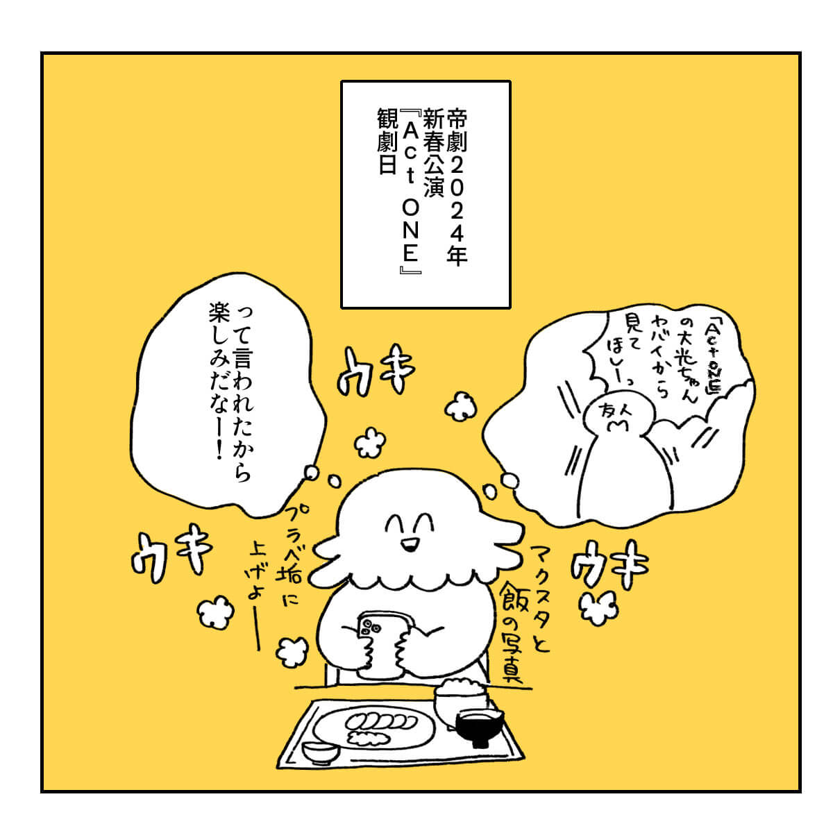 サイゾーウーマン男性アイドル舞台『Act ONE』観劇レポ 男性アイドル [ドルオタ漫画家・竜田トキヒロの“推し事”見聞録]vol.41 舞台『Act ONE』観劇イラストレポ! HiHi Jets・井上&作間のフライングがまるで宗教画 2024/01/25 16:30 竜田トキヒロ(マンガ家) 竜田トキヒロの“推し事”見聞録ジュニアSTARTO ――Twitterで日々、STARTO ENTERTAINMENT(旧ジャニーズ事務所)のタレントをはじめとしたイラストを投稿中のドルオタ漫画家・竜田トキヒロが、現場レポートからドラマや映画、番組レビューまで、“推し事”の様子をお届け! 今回は、 HiHi Jets、美 少年、7 MEN 侍、少年忍者らが東京・帝国劇場で上演中の舞台『Act ONE』をレポート! 今作は、帝国劇場が2025年2月、老朽化による建て替えで休館するまでに行われる記念公演の第1弾。各グループが20分のオムニバス形式でパフォーマンスを行っていくエンターテインメントショーで、林一敬、手島麗央、竹村実悟、阿達慶ら、ユニットに属さない無所属のジュニアも多数出演中です。 演出は出演者たちそれぞれが行い、“スーパーヴァイザー”としてKinKi Kids・堂本光一も携わっているそう。一体どんなステージなのか、イラストで紹介していきます。 舞台『Act ONE』のあらすじは? 次のページ 舞台『Act ONE』7 MEN 侍・矢花黎越しに見たバックジュニアに注目! 123次のページ 関連記事 EBiDANの地上波初冠レギュラー番組、超特急・カイのコメントが光る!『おっさんずラブ-リターンズ-』1話、ファンが求めていた春田&牧カップルに大感激!Snow Man年越し生配信、「応援しよう」とファンに決意させた目黒蓮の“言葉”関ジャニ∞からSixTONES、Snow Man、ジュニアまで……2023年の現場回顧録INIのパフォーマンスは新鮮! STARTOアーティストとの違いとは?
