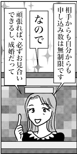 サイゾーウーマンカルチャーマンガアラフォー婚活、紹介! ぜひ! カルチャー まんが『オバサンと言われても結婚したい!』313話 【アラフォー婚活ルポ】紹介! ぜひ! 百聞は一見にしかず 2024/02/14 13:30 白戸ミフル(マンガ家) オバサンと言われても結婚したい! 必ずお見合いできる ――続きは2月18日公開! 【アラフォー婚活ルポ】デート翌朝のメッセージにびっくり! ――合コン歴20年以上、累計回数2,500回以上、30代なかばに乳がんで闘病するも、現在は絶賛婚活中のライター・漫画家の白戸ミフルが「アラフォー婚活」の実体験をほぼリアルタ...サイゾーウーマン2024.01.03 【アラフォー婚活ルポ】サンキューソ~~~マッチ! これで一件落着?――合コン歴20年以上、累計回数2,500回以上、30代なかばに乳がんで闘病するも、現在は絶賛婚活中のライター・漫画家の白戸ミフルが「アラフォー婚活」の実体験をほぼリアルタ...サイゾーウーマン2023.12.13 【アラフォー婚活ルポ】何やってんだか……被害届を作りに警察署へ――合コン歴20年以上、累計回数2,500回以上、30代なかばに乳がんで闘病するも、現在は絶賛婚活中のライター・漫画家の白戸ミフルが「アラフォー婚活」の実体験をほぼリアルタ...サイゾーウーマン2023.12.10 ――バックナンバーはこちら 前のページ123 白戸ミフル(マンガ家) 神奈川県出身。漫画家・ライター。タレント活動の後、マスコミ系の職業を渡り歩き、現在は化粧品メーカーに勤務。合コン歴20年以上、累計回数2500回以上。女性向けwebメディアほか、男性向けメディア、旅系メディア等でライターとして幅広く執筆。著書『合コン・アンド・ザ・シティ 恋活・婚活女子の合コンマニュアル』(ごきげんビジネス出版)、 『乳がんステージ4だった私が、それでも合コンに行きまくって救われた話』(キノブックス) 記事一覧 X:@takara0722 Instagram:@tamifull0722 【アラフォー闘病&婚活記】 最終更新:2024/02/14 13:45 Yahoo 日本人全員が会員になるペース! 関連記事 【アラフォー婚活ルポ】なぬっ!? 来週誕生日なのに、最悪……【アラフォー婚活ルポ】誕生日は1人決定かな……【アラフォー婚活ルポ】年下イケメンから届いた一言LINE……なめやがって!【アラフォー婚活ルポ】39歳でフラれた私は「鬼」になった! 恋愛してやる!! 【アラフォー婚活ルポ】結婚相談所の紹介は○○……アラフォー3人、2021年の婚活を振り返る! その他の作品を読む 次の記事 ドラマTVerお気に入り数ワースト >