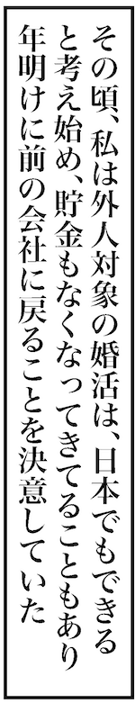 サイゾーウーマンカルチャーマンガアラフォー婚活、「結婚しよう!」26歳男子からプロポーズ カルチャー まんが『オバサンと言われても結婚したい!』まとめ読み 【アラフォー婚活ルポ】「結婚しよう!」無職、26歳男子の言葉に絶句 2024/04/01 13:30 白戸ミフル(マンガ家) オバサンと言われても結婚したい! ――合コン歴20年以上、累計回数2,500回以上、30代なかばに乳がんで闘病するも、現在は絶賛婚活中のライター・漫画家の白戸ミフルが「アラフォー婚活」の実体験をお届けします! 連載は一旦おやすみのため、今回はバックナンバーから「26歳、無職彼氏とのエピソード」をまとめてお送りします。 「結婚しよう!」無職、26歳男子の言葉に絶句 40歳で海外婚活を決意。シドニーで1週間だけ通った英語学校の交流イベントにイケメン発見! 次のページ 12345678910次のページ 関連記事 【アラフォー婚活ルポ】ガーン……交際希望、お断りされた!!!【アラフォー婚活ルポ】お見合い中に何度も聞かれた、この質問【アラフォー婚活ルポ】えぇ~オジサンたちのところに戻りたくない【アラフォー婚活ルポ】キョロキョロ……独身男子とも話したいけど【アラフォー婚活ルポ】イヤな予感……そういやバツイチだっけ その他の作品を読む