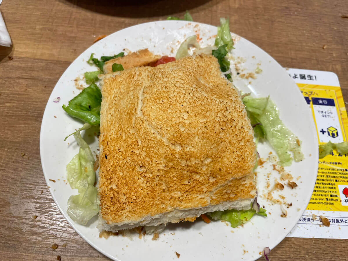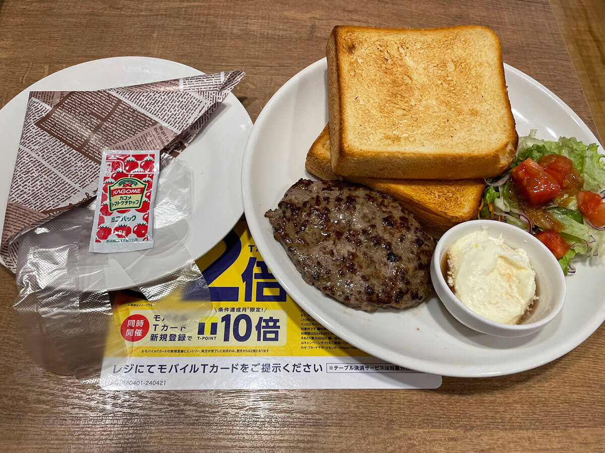 サイゾーウーマン暮らし食べ物ガスト、ヒロミ考案メニュー実食 暮らし 胸騒ぎのメニューを実食! 【ガスト】『ジョブチューン』で売上増も――1,190円「ヒロミ考案DIYメニュー」食べたら悲惨だったワケ 2024/04/17 14:00 サイゾーウーマン編集部(@cyzowoman) 暮らしガスト ガストの外観(C)サイゾーウーマン ファミリーレストラン店舗数1位のガストが、4月11日よりタレント・ヒロミが考案した「ヒロミオリジナルDIYメニュー」を発売中! なぜヒロミ? なぜファミレスでDIY? なんだか胸騒ぎがしたので、早速食べに行ってきました! 目次 ・【ガスト】メディア効果で売上UP ・1,190円DIYメニュー、作業工程は? ・ハンバーグサンドのDIYに挑戦! ・DIYハンバーグサンドは難儀なメニュー ※価格はすべて税込。 ※価格やメニューは2024年4月11日時点の情報です。 ※店舗によって価格やメニューが異なることがあります。 ※最新の情報は公式サイトや公式SNSをご確認ください。 テレビ効果で売上UPの【ガスト】、今度はヒロミ考案メニューを販売 現在全国に1,200店舗以上を展開し、ファミレス店舗数ランキングでは2位のサイゼリヤを引き離しているガスト。 最新の「月次業績」発表によれば、3月2日に『ジョブチューン』(TBS系)で人気企画「ガストvs超一流料理人!」が放送されたことで、客数・売上・客単価が大きく伸びたそうです。 そんなメディアともうまく手を組み、宣伝効果を上げているガストですが、今度は『有吉ゼミ』(日本テレビ系)の企画「八王子リホーム」などでDIYの腕前を披露しているヒロミをスペシャルアドバイザーに迎えた新カスタムメニュー「ヒロミオリジナルDIYメニュー」の販売を開始。 メニューは食事2種、デザート1種の以下の全3種類です。 「ヒロミオリジナルDIYメニュー」 ・DIY ビーフ100%ハンバーグサンド 1,190円 ・DIY ミートパスタ&ミニチーズINハンバーグ 890円 ・DIY パンケーキプリンアラモード 890円 販売期間:2024年5月22日まで(対象期間は予定、予告なく販売を終了する可能性あり) ヒロミは地元・八王子のガストによく通っていたそうで、ガストでおいしかったメニューを思い出しながら考案したそう。 今月登壇したPRイベントでは「ママに話したら『それ怒られないの!?』と言われるくらい自由に作らせてもらいました」と妻・松本伊代とのエピソードも披露していました。 このメニューに一体どんなDIY的な要素があるのでしょうか。早速、ガストに行ってみます! 【ガスト】「DIY ビーフ100%ハンバーグサンド」1,190円の作業工程は? 「Do It Yourself!」と言ってそうなヒロミ(C)サイゾーウーマン ガッツポーズの裏面(C)サイゾーウーマン テーブルにつくと、早速、ガッツポーズのヒロミがプリントされた厚紙がお出迎え。「一体これは何?」と裏をめくると、DIYメニューの作業工程を説明する紙でした。 今回はおなかがすいていたので、一番ボリュームがありそうな「DIY ビーフ100%ハンバーグサンド」(1,190円)を注文。商品説明にある「ビーフ100%肉々しいハンバーグを厚切りパンに挟むと旨さ倍増! マジうまいから食べてみて!!」のキャッチコピーがヒロミの声で脳内再生されます。 なお、このメニューのDIYは以下のスリーステップ。 「DIY ビーフ100%ハンバーグサンド」の作業工程 (1)パンにサラダをのせ、ビーフバーグ、その上にオニオンソテーとケチャップをのせてみよう! (2)パンを片手で抑えながら、パンの耳をナイフで切り落とそう! (3)紙に包んで出来上がり! 厚切りパンとビーフ100%のボリュームが新しい! 「なんだか大変そう……」と不安になっていると、ほどなくして商品が到着しました。 【ガスト】「DIY ビーフ100%ハンバーグサンド」のDIYに挑戦! 「DIY ビーフ100%ハンバーグサンド」が到着(C)サイゾーウーマン やってきたお皿は2つ。片方の皿には食材、もう片方には袋状の紙、ビニル手袋、袋入りケチャップがのっています。 筆者の第一印象は「想像以上にパンが分厚い!」。4もしくは5枚切り程度の食パンが2枚ついていて、表面はカリカリにトーストされています。 ケチャップが飛び出したけど、ここまでは難なくクリア(C)サイゾーウーマン まずは、トーストの上にサラダ、ビーフバーグ、オニオンソテー、ケチャップ、そしてもう1枚のトーストを積み上げていきます。 メインの作業へ(C)サイゾーウーマン 続いて、片手にビニル手袋を装着するのですが、途端に周囲の視線が気になり始める!! 周囲のテーブルの女子高生たちからドン引かれているのではないか、カニでも食べると勘違いされているのではないか、「え、あの人、何やってるの? 超ウケる」とコソコソ話をされているのではないか……筆者はありとあらゆる被害妄想にとりつかれてしまったんです。 「なんのプレイだよ。もう耳付きでいいよ……」とこのまま食べたい気持ちでいっぱいでしたが、出来心で注文したとはいえ、ヒロミの笑顔を前にやめるわけにはいきません。最後までやりきります! 皿からいろいろ飛び出し、惨事!(C)サイゾーウーマン しかし