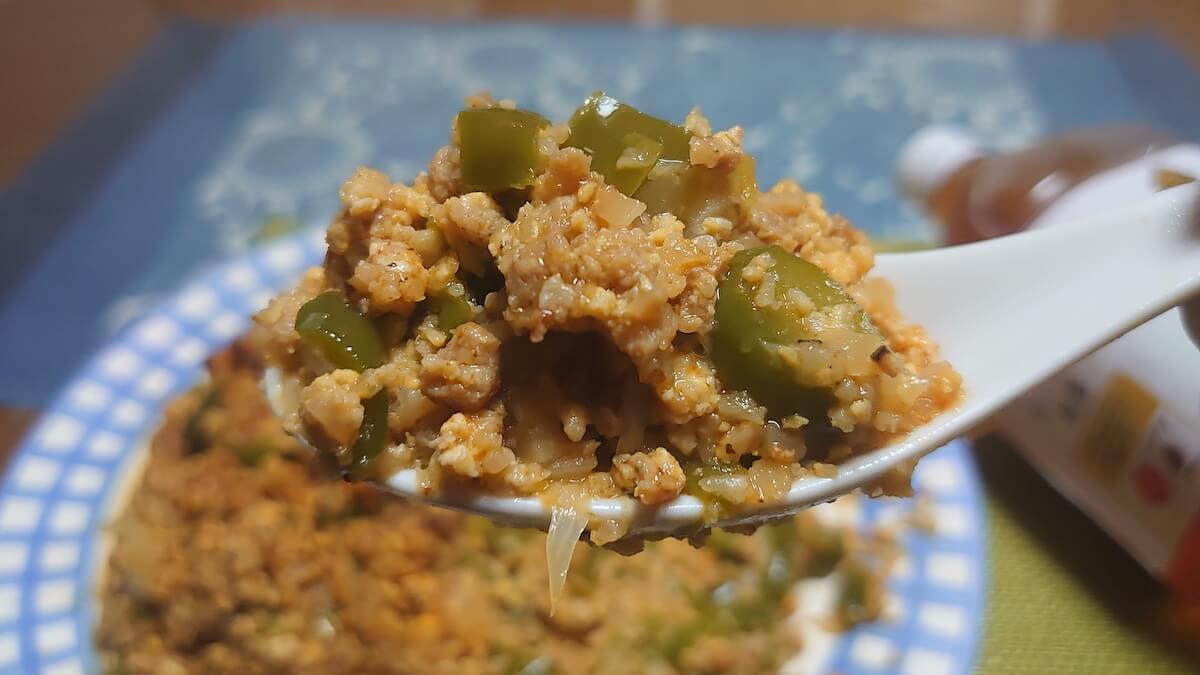 謎肉とカリフラワーライスのチャーハン山盛り
