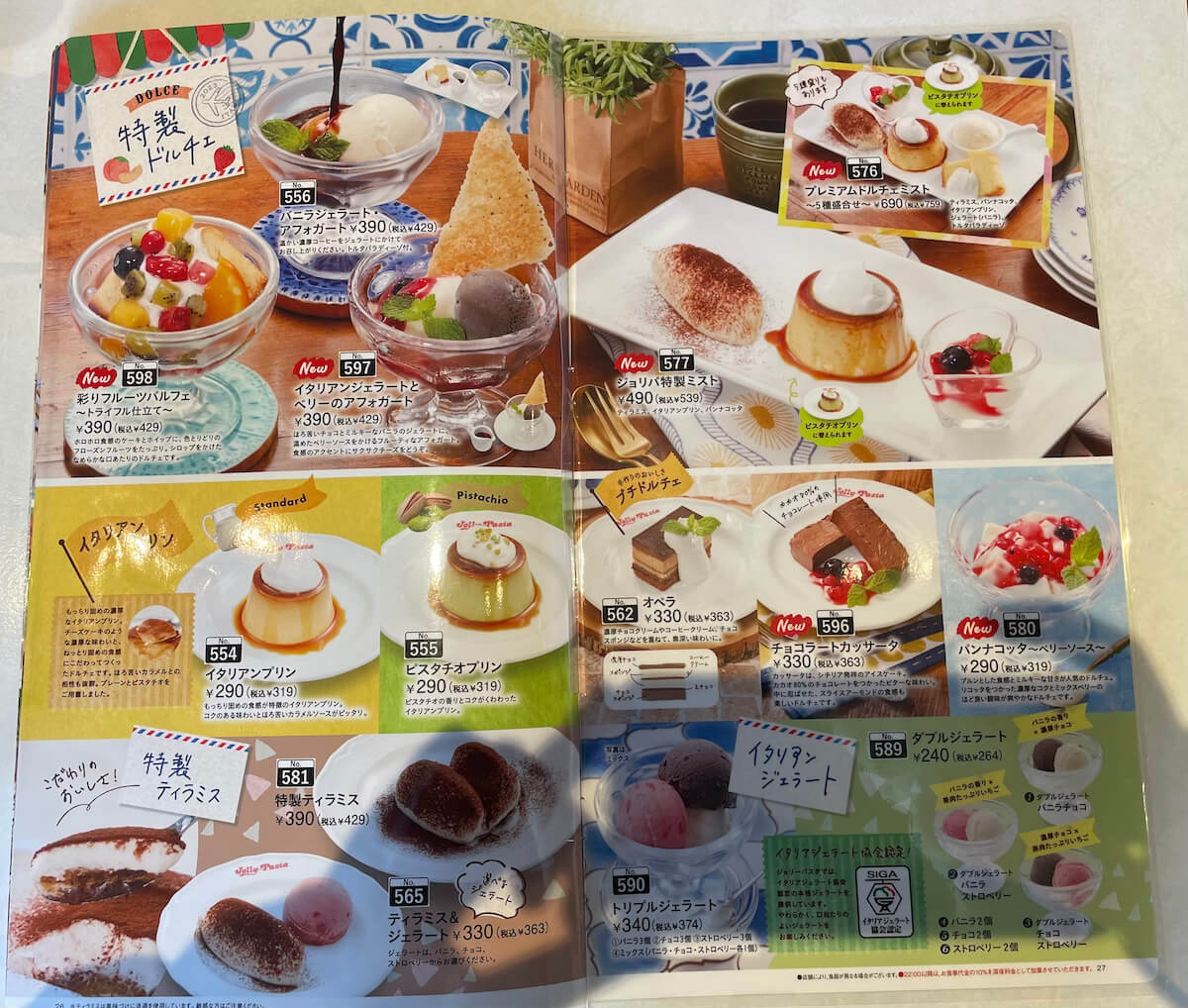 サイゾーウーマン暮らし食べ物【ジョリパ】デザートこそおすすめのワケ 暮らし ジョリーパスタ、実食レビュー 【ジョリーパスタ】冷製パスタだけじゃない、デザートこそ食べるべき理由とは? 2024/07/28 13:00 サイゾーウーマン編集部 サイゼリヤ ジョリーパスタ外観(写真:サイゾーウーマン) 夏の期間限定メニューの冷やし麺がスタートしているパスタ専門チェーン「ジョリーパスタ」。店舗数302 とイタリアンチェーンではサイゼリヤに次ぐ業界第2位です。そんな「ジョリーパスタ」、実はデザートが人気な模様。実食してきました! ※2024年2月29日公開の記事を再編集しています。 ※価格や情報は24年2月29日時点のものです。 ※最新の情報は公式サイトや公式SNSをご確認ください。 目次 ・ジョリーパスタとは ・サイゼリアとジョリーパスタのデザートメニュー比較 ・ジョリーパスタ「ジョリパ特製ミスト」実食 ・デザートはサイゼリヤより断然ジョリーパスタを選ぶ! ジョリーパスタとは ジョリーパスタ外観(写真:サイゾーウーマン) ジョリーパスタは、すき家、なか卯などを展開するゼンショーグループの一つ。 パスタをメインにピザやドルチェも扱うチェーン店で、第1号店を東京都世田谷区に出店後、全国302店舗(22年3月31日時点)に拡大した人気店です。 定番メニューのほかに、冷製パスタやスープパスタなど季節ごとの特別メニューも提供し、いつ行っても目新しい季節メニューが展開されているのも魅力です。 現在は季節限定メニューの「うにの冷製パスタ」を提供中。8月1日からは「和風冷製ローストビーフパスタ」も登場します。 【ジョリーパスタ】デザート数が20品、サイゼリヤはデザート激減 そんなジョリーパスタですが、実はデザートにも力が入っていて、評判も高い様子。 比較として、業界1位のサイゼリヤのデザートメニューをチェックすると全8品(※画像は昨年12月時点のメニューで、現在は「シチリア産ピスタチオのデザート」は販売していません)。 最安はイタリアンプリン(250円)、最高がプリンとティラミスクラシコの盛合せ(500円)です。 リニューアル前のメニュー。現在は「シチリア産ピスタチオのデザート」は販売していません(写真:サイゾーウーマン) 実は、サイゼリヤからデザートがどんどん減っていることに気がついていましたか? 調べたところ、パンナコッタシリーズやデザートフォカッチオは消滅し、熱いファンもついていたアイスケーキシリーズ(ティラミス、カプチーノ、季節限定でヘーゼルナッツやメリンガータなども)も22年を最後に消えたとか。 一方、ジョリーパスタのデザートメニューはこちら!(※画像は24年2月29日時点のメニューです) 豊富なメニュー。情報量も多い(写真:サイゾーウーマン) ジョリパのドルチェメニューは全20品。メニュー写真のほかに、公式サイトでは期間限定メニューも載っています。最安は「あまおう苺フロマージュ」(198円)、最高が「プレミアムドルチェミスト〜5種盛合せ〜」(759円)。 ジョリーパスタは圧倒的な品数で、価格もお手頃ですね。 【ジョリーパスタ】「ジョリパ特製ミスト」(539円)実食 今回は、デザートの盛合せ「ジョリパ特製ミスト」(539円)を頼みました。 「ジョリパ特製ミスト」(539円)(写真:サイゾーウーマン) ジョリパ特製ミストは、ティラミス、イタリアンプリン、パンナコッタの盛合せ。うれしいことに、イタリアンプリンをピスタチオプリンに無料で変更可能です! 今回はプレーンのイタリアンプリンのままにしました。 「ジョリパ特製ミスト」のティラミス(写真:サイゾーウーマン) ティラミスはマスカルポーネが濃厚! ブランデーが染み込んだ生地は、風味をしっかり感じつつもアルコール感は強くないので、サイゼリヤより子どもも食べやすそう。コーヒーにとっても合います。 「ジョリパ特製ミスト」のプリン(539円)(写真:サイゾーウーマン) プリンは一口食べて、もっちりねっとりの質感にびっくり! さらに味の濃厚さに、またびっくり! プリンというより、クレームブリュレを固めたようなクリーミーな味わい。 メニュー表によると「チーズケーキのような濃厚な味わいと、ねっとり硬めの食感にこだわってつくったドルチェ」とのこと。まさにその通り! 質量があるので、見た目よりも満足感があり、2人でシェアして食べてもよさそう。 さて、ティラミスとプリンの盛合せはサイゼリヤにもありますよね。それと比べると、2つのボリュームはサイゼと同程度。プリンのサイズも同じくらいですが、濃厚さとねっとりさではジョリーパスタのほうに分があるように思います。 「ジョリパ特製ミスト」のパンナコッタ(539円)(写真:サイゾーウーマン) 最後はパンナコッタ。フローズンのいちご、ブルーベリーが乗っています。パンナコッタをすくおうとしたら、驚きのプルンプルン具合!! ミルキーな甘さと酸味あるベリーソースがばっちり合います。 ティラミスとプリンときて、このほどよい酸味がいい仕事してます。ミルク味
