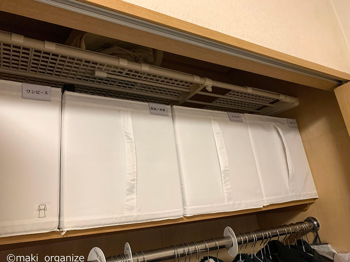 サイゾーウーマン暮らし住まい【イケア】899円「大容量収納ケース」活用術3 暮らし [連載]女たちの「煩悩部屋」ビフォーアフター 【IKEA】899円大容量「収納ケース」で寝室スッキリ! プロが教える活用事例3 2024/09/18 17:00 伊藤まき(収納ライター) 「汚部屋」ビフォーアフター 整理収納アドバイザーの伊藤まきさんが、片付けに悩む読者の自宅を使いやすく生まれ変わらせる連載シリーズ【「煩悩部屋」ビフォーアフター】。 連載企画『ビフォーアフター』新シーズンです。第10回目の片付けモニターは、東京都世田谷区・1SLDKで暮らす3人家族のまいさん(32歳)。今回は、汚部屋の片付けではなく「リノベマンション」の収納を手直しする特別編です。 目次 ・【イケア】SKUBB収納ケース活用例 ・【イケア】SKUBB収納ボックス活用例 ・【イケア】DRONAボックス活用例 ・【まとめ】かさばりが減って寝室全体がスッキリ! 衣替えの洋服や紙袋の山がどっさりです(C)maki_organize クライアントプロフィール ・まいさん(32歳) ・保育園の園長先生(フルワーク) ・育児系インフルエンサー“まい先生“としても活躍 ・3人家族 ・1SLDK ・中古マンションをリノベーション購入(持ち家) ・東京都世田谷区在住 収納に関する要望 ・掃除や片付けの頻度を少なくしたい ・子どもが自分で身支度できる仕組みを作りたい ・ベッドルームのレイアウトを変えたい ・シンプルに暮らしたいので、家具を増やしたくない 前回は「洋服を捨てない収納術」で、寝室のワードローブ用ラックを片付けました。今回はその際に使用した「IKEAの収納ケース&ボックス」について、活用例やメリットをくわしく紹介していきます。 【イケア】SKUBB収納ケース活用例:かさばる「冬小物」収納に W55×D44×H19cm(899円) 商品番号/502.903.61(C)maki_organize 使用頻度の低い小物や衣類をしまうのにぴったりなのが、イケア「SKUBB 収納ケース」です。 899円のサイズ(W55×D44×H19cm)にマフラー、ニット帽、ストール、モコモコ靴下など、「冬のかさばる小物」をまとめて収納しました。シーズンになれば、ジッパーを開けっぱなしにして、出し入れすればOKです。 【イケア】SKUBB収納ケース活用例:ジッパー付きだから「圧縮収納」できる W69×D55×H19cm(999円) 商品番号/702.949.90(C)maki_organize 部屋のすき間に押し込んでいた寝具類も、999円のサイズの(W69×D55×H19cm)SKUBB収納ケースへ。毛布を4枚入れましたが、まだまだ余裕がありますね。かさばる羽毛布団を入れても、ジッパー付きなので「圧縮収納」することが可能です。 「ラベリング」で管理をラクに! 中身がすぐに分かるので便利(C)maki_organize 冬用小物と毛布、それぞれのケースにカードリングと100均の園芸用ラベルで作った「タグ」をつけました。ケースを開けなくても中身が分かるので、管理がラクになります。 【イケア】SKUBB収納ケース活用例:引き出しのように使えて便利 ラックにスッキリ収まった!(C)maki_organize 2つのケースをワイヤーラックに設置しました。いずれも高さ19cmなのでスペースを無駄に奪わず、コンパクトに収納できるのがメリット。ふた付きなのでほこりが防げる点も◎です。 また、取っ手がついているので、引き出しのように中のモノを取り出せる点も便利ですね。 【イケア】SKUBB収納ケース活用例:衣装ケースより「収納力」あり W69×D55×H19cm(999円)(C)maki_organize シーズンオフの衣類を、999円のSKUBBケースにまとめました。衣装ケースだと3〜4枚しか入らないトップス(セーター、トレーナーなど)も余裕で入る収納力の高さが特徴。写真は9着分ですが、12枚以上は入りますね。 夏冬のスポーツウェア、キャンプや登山服など「かさばる衣類」の収納にも向いています。 【イケア】SKUBB収納ケース活用例:軽い素材だから「上段収納」に最適 ケースが多い場合は、縦置きにしてもOK(C)maki_organize ケースに収納した衣替え用の衣類を、ワイヤーラックの最上段に設置しました。軽い素材なので、「女性ひとりの力」で置くことができます。 【イケア】SKUBB収納ボックス活用例:クローゼット上段でも使いやすい W31×D34×H33cm 商品番号/101.863.90(C)maki_organize クローゼットの上段には、IKEA「SKUBB 収納ボックス」(3ピース 1799円)を設置しました。 取っ手が長いので、快適な出し入れができる点が◎。クローゼットの奥行きが70cm以上ある場合も、手前と奥の2つに分けて使えます。ただし、奥行き45cmの場合は「奥行き42cmの収納ボックス」を選ぶようにしてください。 【イケア】SKUBB収納ボックス活用例:使用頻度の低い小物を収納 取っ手が「縦長」だから使いやすい!(C)maki_organize クローゼットの上段は手を伸ばして出し入れする場所になるため、使用頻度の低い小物の収納に向いています。例えば、予備のバッグ、スポーツウェア、イベント服、季節外れの家着など。子どもがいるご家庭の場合は、サイズアウトや売りたい服をまとめておいても便利です。 【イケア】SKUBB収納ボックス活用例:ファイルボックスで仕切ると◎ 使用頻度の低いイベント小物入れに