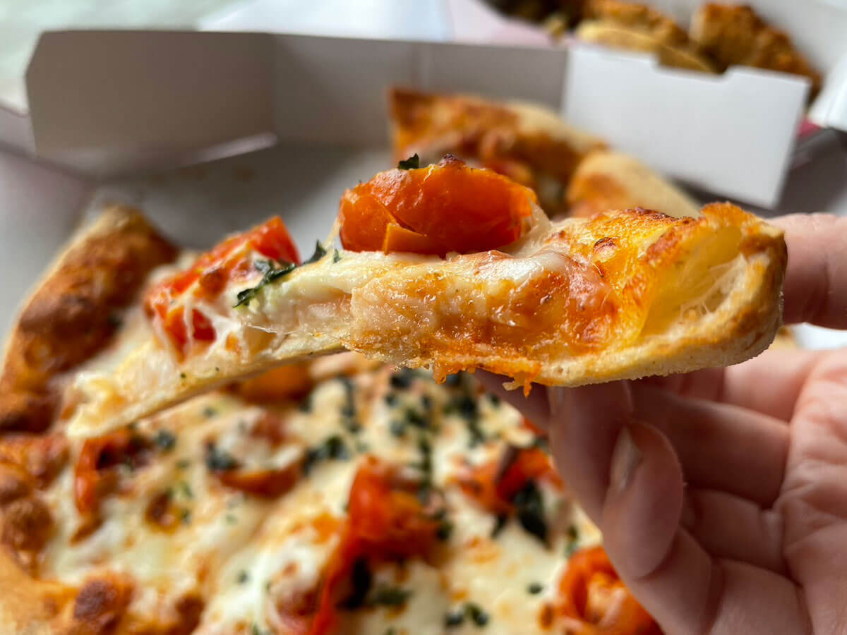 サイゾーウーマン暮らし食べ物ドミノ・ピザ、閉店ラッシュでも偉業 暮らし 人気チェーン実食レビュー 【ドミノ・ピザ】80店舗の閉店ラッシュでも……『ジョブチューン』ピザ史上初の偉業、9品合格品は? 2024/10/24 10:00 サイゾーウーマン編集部(@cyzowoman) 暮らしドミノ・ピザ ドミノ・ピザの箱(写真:サイゾーウーマン) 閉店ラッシュが伝えられていたドミノピザは『ジョブチューン~アノ職業のヒミツぶっちゃけます!』(TBS系)ピザジャッジ史上初の9品合格を達成しました。そこで今回、実際に食べてみました。 目次 ・【ドミノ・ピザ】閉店80店舗、「閉店ドミノ」の揶揄も ・『ジョブチューン』ドミノ・ピザvs超一流料理人合格・不合格まとめ【2024年3月23日放送】 ・ドミノ・ピザ「もっとマルゲリータ」を実食! ・「もっとマルゲリータ」の魅力と欠点 ※メニューや価格は2024年3月20日の情報です ※最新情報は公式サイトをご確認ください 【ドミノ・ピザ】閉店80店舗、「閉店ドミノ」の揶揄も ピザデリバリー大手のドミノ・ピザは、昨年に国内店舗数が1,000店舗を突破。運営元によると、10年前の店舗数は200店舗ほどだったそうで、10年で店舗数が5倍に激増した背景には、積極的なキャンペーン展開など“攻めの姿勢”があったようです。 しかし、8月には各地から閉店報告がネット上に続出。最大で80店舗を閉店する方針が明らかになると、「閉店ドミノ」とも揶揄されました。なお、大量閉店は本国アメリカの経営方針で決まったこととのことです。 『ジョブチューン』従業員イチ押し商品トップ10 3月23日の『ジョブチューン~アノ職業のヒミツぶっちゃけます!』(TBS系)では、「超一流ピザ職人がジャッジ!ドミノ・ピザ従業員イチ押し商品TOP10!」が放送され、ドミノ・ピザはピザジャッジ史上初の9品合格を達成しました。 ドミノ・ピザが『ジョブチューン』のジャッジ企画に登場するのは3年ぶり3度目。過去には、圧倒的売上No.1の「マルゲリータ」がまさかの不合格となりましたが、今回は4年の歳月を経て完成した“新生マルゲリータ”でリベンジしました。 今回、『ジョブチューン』でジャッジした10商品は以下の通り。 『ジョブチューン』ドミノ・ピザ従業員イチ押し商品TOP10 1位:もっとマルゲリータ(リベンジ挑戦) 2位:チーズボルケーノ ギガ・ミート 3位:シーフード・スペシャル(リベンジ挑戦) 4位:プレミアムシェイク リアルストロベリー(ホイップクリーム) 5位:チェダーベーコンツイスト ドミノ・デラックス 6位:明太マヨモチ(リベンジ挑戦) 7位:さくらピザ 8位:ザクチキ 9位:居酒屋アスパラベーコン 10位:ニューヨーカー ビッグペパロニ&ソーセージ 『ジョブチューン』ドミノ・ピザvs超一流料理人合格・不合格まとめ【2024年3月23日放送】 第10位 「ニューヨーカー ビッグペパロニ&ソーセージ」直径40cm:4,280円……合格(合格6人、不合格1人) 第9位 「居酒屋アスパラベーコン」Mサイズ:3,290円……合格(合格5人、不合格2人) ※クリスピー生地 第8位 「ザクチキ」:599円……パーフェクト合格 第7位 「さくらピザ」Mサイズ:4,290円……合格(合格6人、不合格1人) 第6位 「明太マヨモチ」Mサイズ:3,680円……合格(合格5人、不合格2人) ※リベンジ挑戦 第5位 「チェダーベーコンツイスト ドミノ・デラックス」Mサイズ:3,770円……パーフェクト合格 第4位 「プレミアムシェイク リアルストロベリー(ホイップクリーム)」:640円……パーフェクト合格 第3位 「シーフード・スペシャル」Mサイズ:4,290円……不合格(合格1人、不合格6人) ※リベンジ挑戦 第2位 「チーズボルケーノ ギガ・ミート」Mサイズ:5,890円……パーフェクト合格 第1位 「もっとマルゲリータ」Mサイズ:3,280円……合格(合格4人、不合格3人) ※リベンジ挑戦 【ジョブチューン】ドミノ・ピザ「もっとマルゲリータ」を実食! 今回は従業員イチ押し商品第1位の「もっとマルゲリータ」Sサイズ(ハンドトス)を実際に食べてみました。ついでに「ザクポテ」(ザクチキ&ポテト)も注文して、配達用のクーポン「ピザ1枚+サイドメニュー1品」を使うと合計1,699円でした。 「もっとマルゲリータ」と「ザクポテ」(写真:サイゾーウーマン) こちらがドミノ・ピザ従業員イチ押し商品1位だという「もっとマルゲリータ」。半分にカットされたチェリートマトがごろごろとのっています。 「もっとマルゲリータ」の断面(写真:サイゾーウーマン) チーズが1.5倍量であることがウリの「もっと」シリーズだけあって、断面を見るとチーズの層が厚め。口に入れると、イタリア産ボッコンチーニ(モッツアレラ)のミルキーな風味を十分に感じられます。 ただ、商品到着後、速攻で食べ始めたものの、チーズが固まっていてびよーんとはならず、がっかり。ピザ自体もアツアツとは程遠い温度であったため、焼いてから時間がたっていたのかもしれません。 ただ、チェリートマトは甘さが強く、フレッシュでおいしい! 歯ごたえもあって、ピザなのにサラダを食べているような感覚も楽しめます。 バジルはかかっている